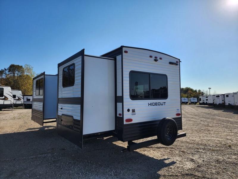 The Keystone Hideout DLX travel trailers will be just what the doctor ordered for a stress-free holiday at your favorite campsite! There are a few exclusive features that you'll only find on a Keystone product, like the in-floor heating ducts and the Tru-fit™ slide construction. Each model has a power awning for some shade in the afternoon, and the tinted safety glass windows will prevent the harmful UV rays from getting inside. You'll also have blackout night shades that you can close when you want privacy and one-piece pressed countertops that are not only sleek looking, but easy to keep clean.