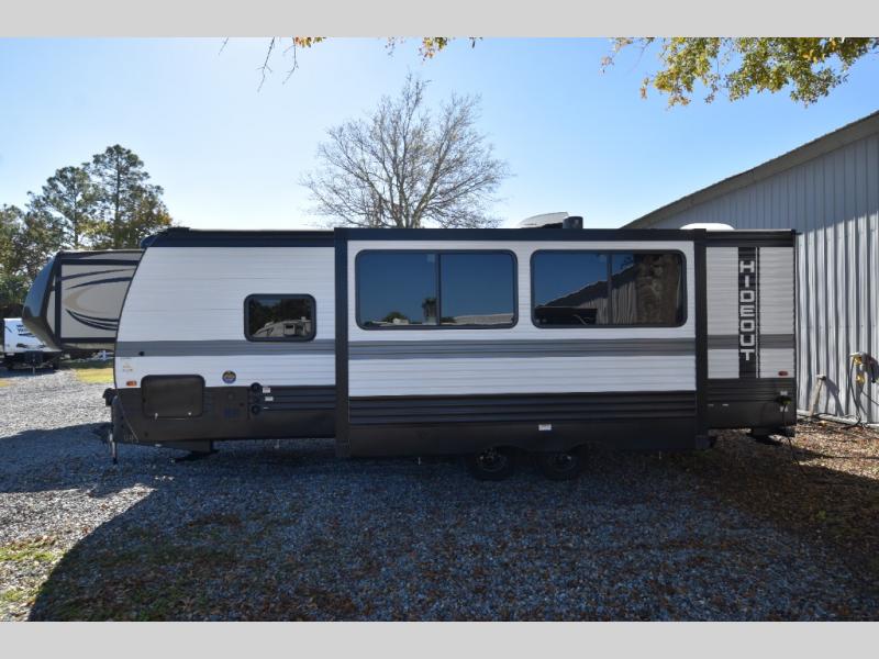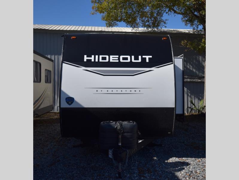 The Keystone Hideout travel trailers will be just what the doctor ordered for a stress-free holiday at your favorite campsite! There are a few exclusive features that you'll only find on a Keystone product, like the in-floor heating ducts and the Tru-fit™ slide construction. Each model has a power awning for some shade in the afternoon, and the tinted safety glass windows will prevent the harmful UV rays from getting inside. You'll also have blackout night shades that you can close when you want privacy and one-piece pressed countertops that are not only sleek looking, but easy to keep clean.