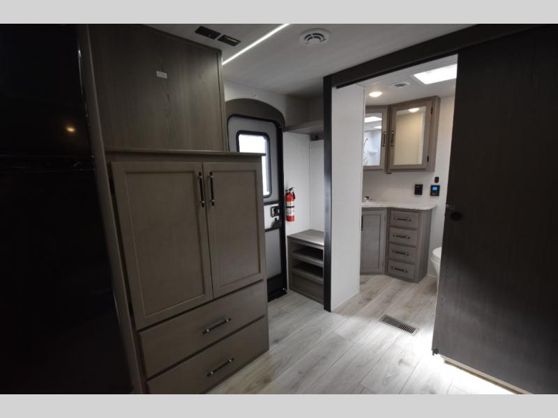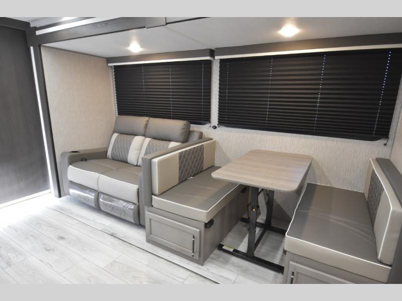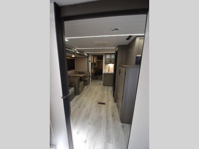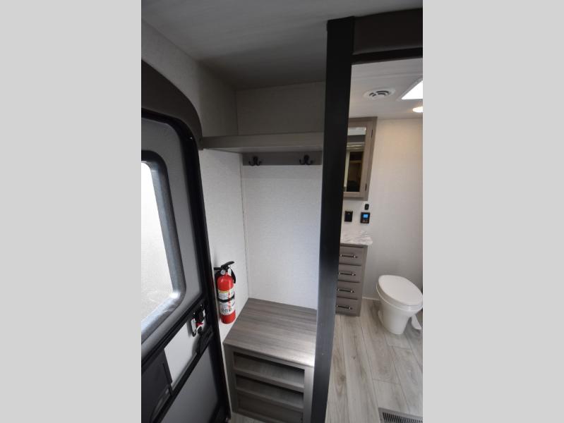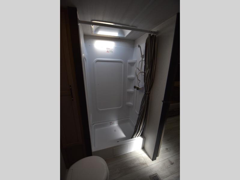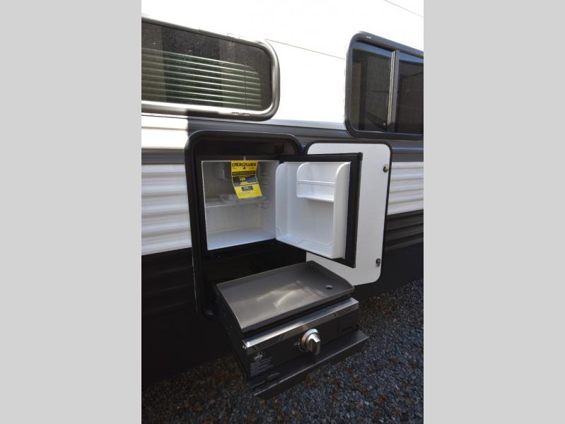You can hide out for days at a time with this Hideout travel trailer! There is a slide out for extra living space, and here you'll find the booth dinette and standard sofa. If you're needing a different seating or sleeping space, just choose the optional theater seat or optional tri-fold sofa. The rear bathroom is large and accommodating with its large countertop, spacious shower, and linen closet. The front private bedroom has a queen-size bed with a laundry chute right next to it for keeping your dirty laundry hidden. You will also enjoy the 16' power awning outdoors where you can visit in the shade while enjoying a cold beverage from the outside refrigerator!