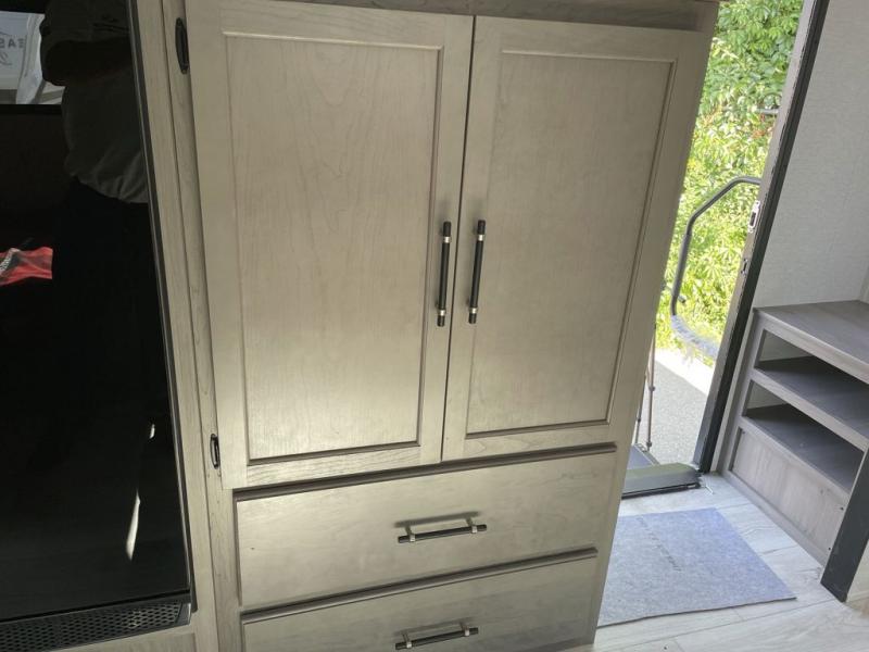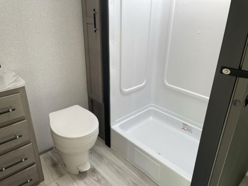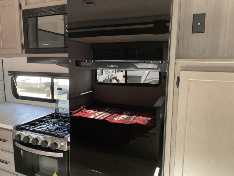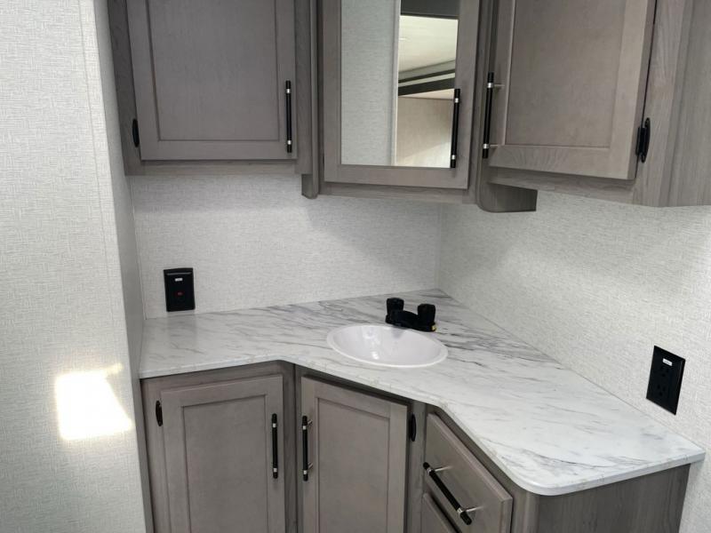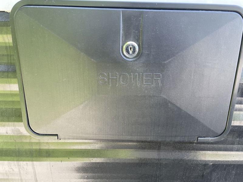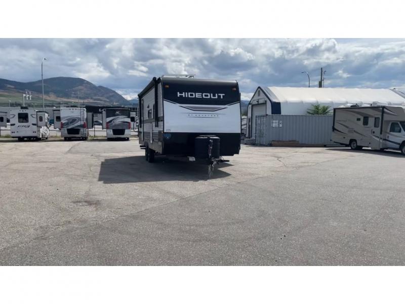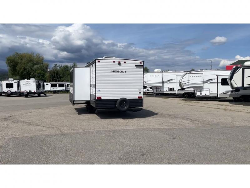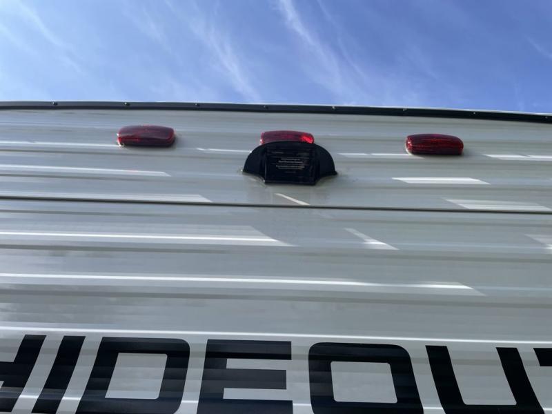 You can hide out for days at a time with this Hideout travel trailer! There is a slide out for extra living space, and here you'll find the booth dinette and tri-fold sofa. The rear bathroom is large and accommodating with its large countertop, spacious shower, and linen closet. The front private bedroom has a queen-size bed with a laundry chute right next to it for keeping your dirty laundry hidden. You will also enjoy the 16' awning outdoors where you can visit in the shade!