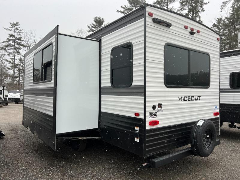 The Keystone Hideout travel trailers will be just what the doctor ordered for a stress-free holiday at your favorite campsite! There are a few exclusive features that you'll only find on a Keystone product, like the in-floor heating ducts and the Tru-fit™ slide construction. Each model has a power awning for some shade in the afternoon, and the tinted safety glass windows will prevent the harmful UV rays from getting inside. You'll also have blackout night shades that you can close when you want privacy and one-piece pressed countertops that are not only sleek looking, but easy to keep clean.