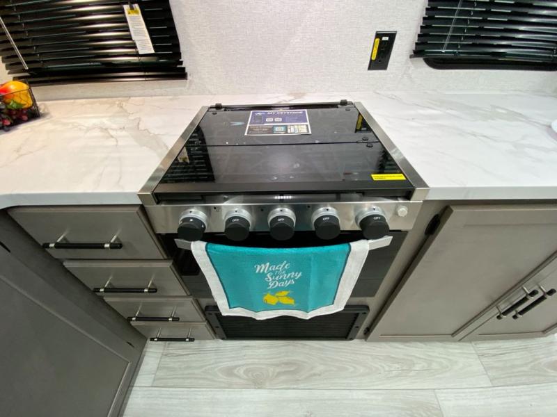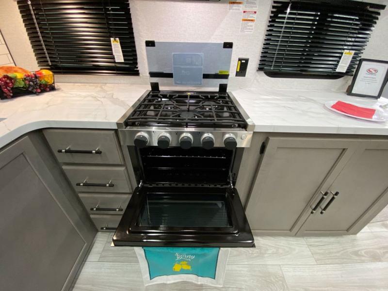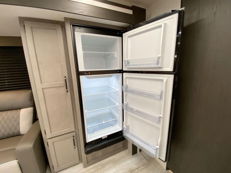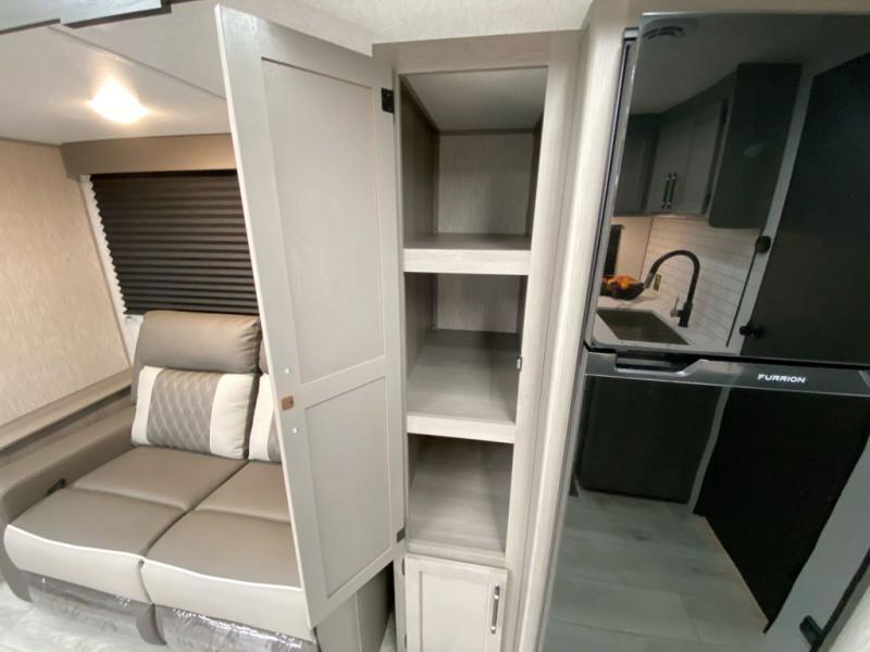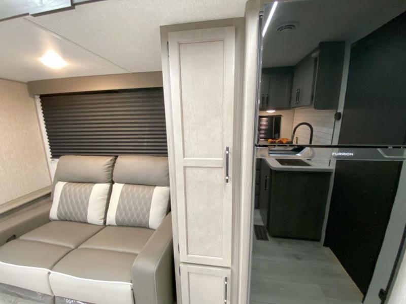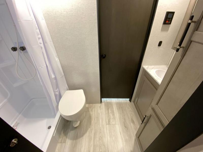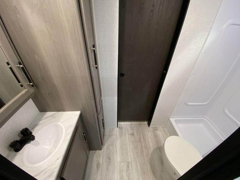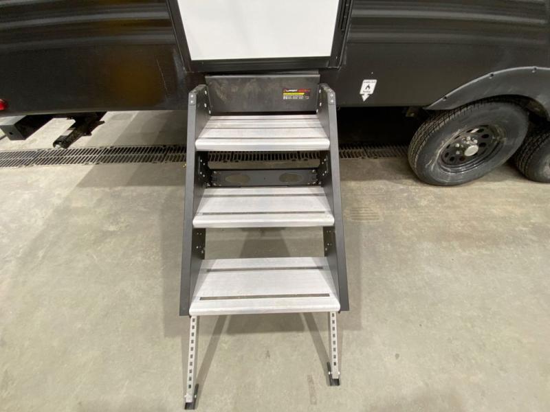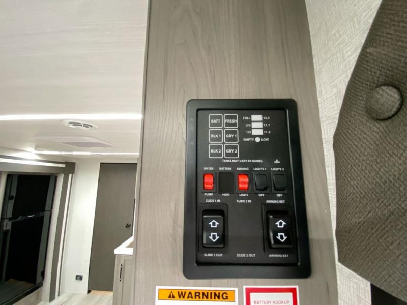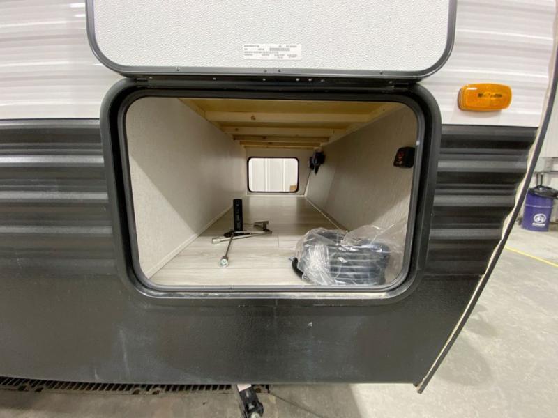 Enjoy every camping trip in this spacious dual entry travel trailer for six. You will love the rear U-dinette and the sofa within the large slide out, and there is TV prep in the living area if you plan to bring along your television. Home cooked meals can be whipped up in a hurry on the three burner range, and there is plenty of counter space to cut up fresh veggies. The walk-through bath is convenient for everyone to access, and here you'll find a spacious shower and a linen closet for clean towels. Head to the master bedroom where you'll be met with a queen bed, dual nightstands and closets, a laundry chute, plus your own exterior entry door; how convenient!