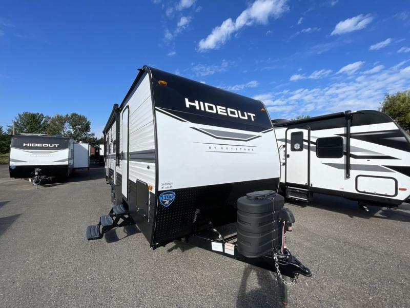 The Keystone Hideout DLX is built for stress-free camping with durable construction and thoughtful details like Tru-fit™ slide construction and in-floor heating ducts to keep you cozy. Lightweight yet strong, this travel trailer is easy to tow while offering everything you need for comfort and adventure.