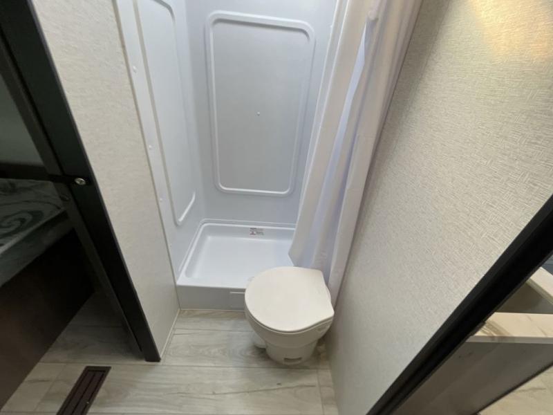 The walk-through bathroom offers convenience for the whole crew with a spacious shower, linen storage, and easy access from both the bedroom and living area. The front master bedroom provides a queen bed, dual nightstands, dual closets, laundry chute, and its own exterior entry door for privacy and convenience, making it feel like a home away from home.