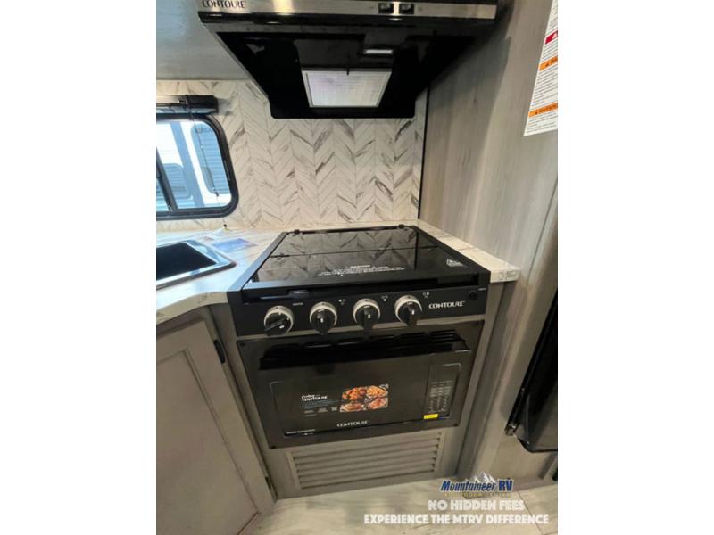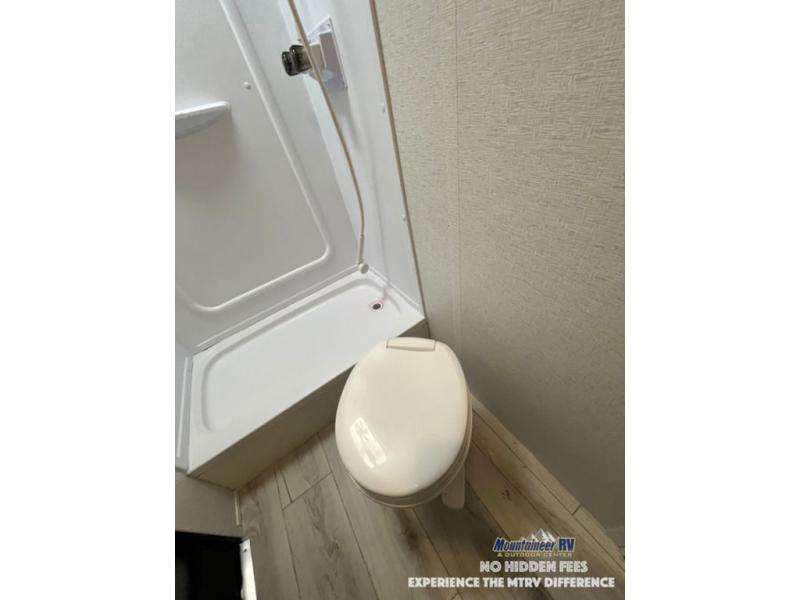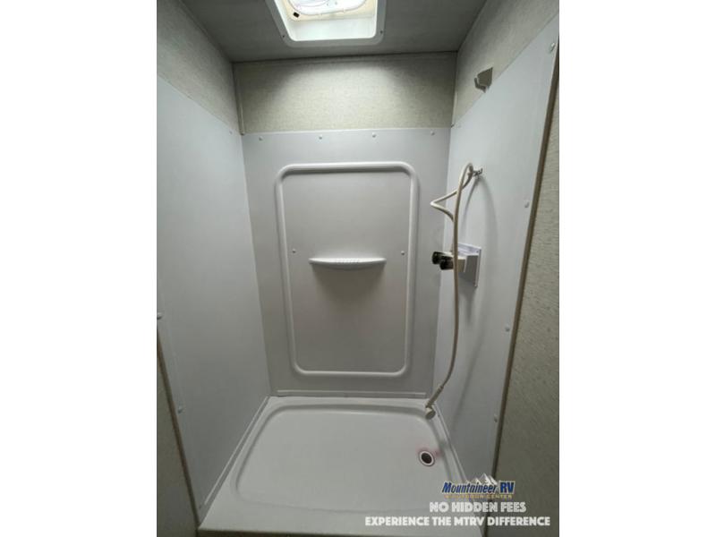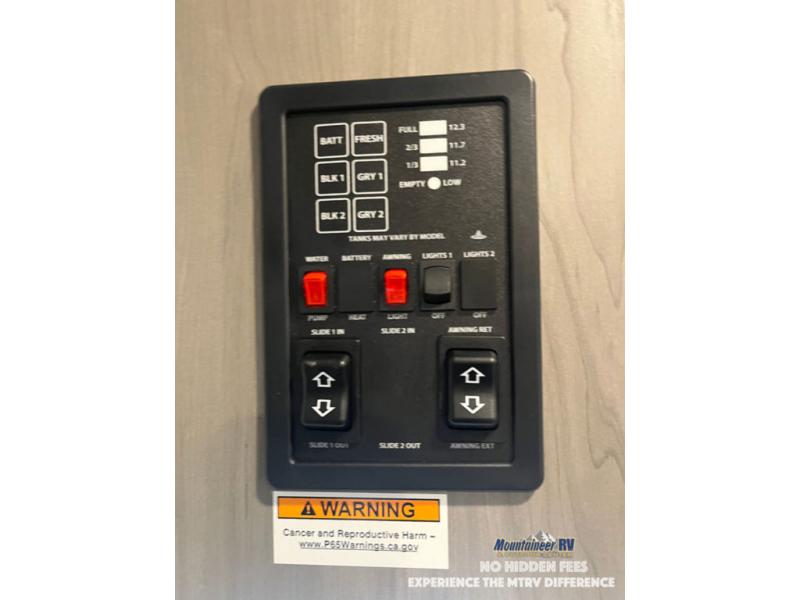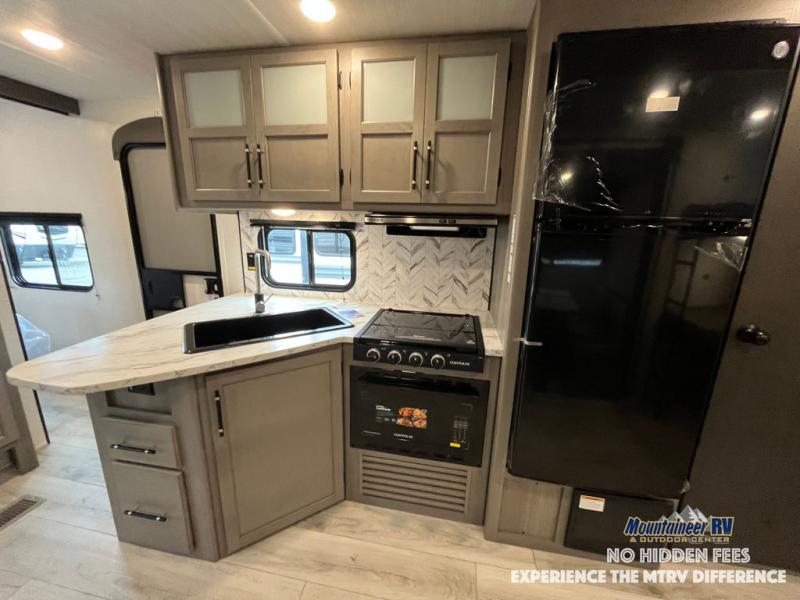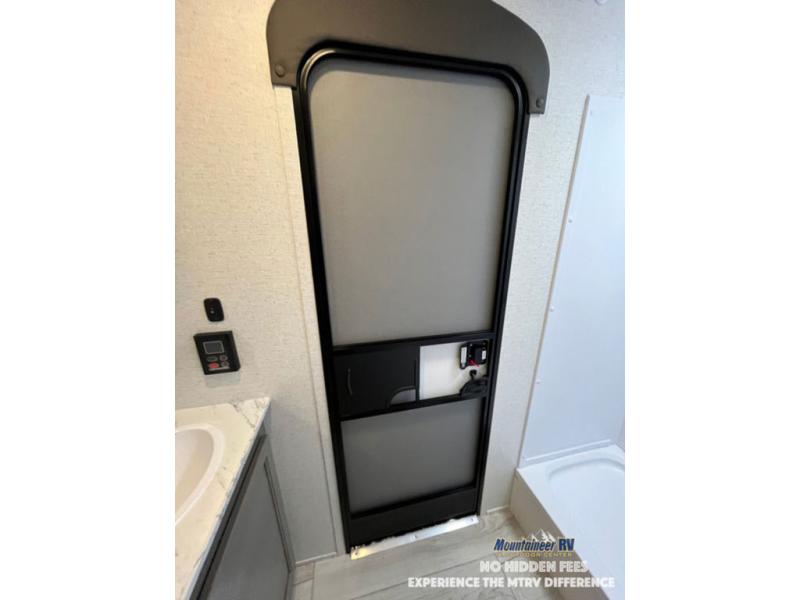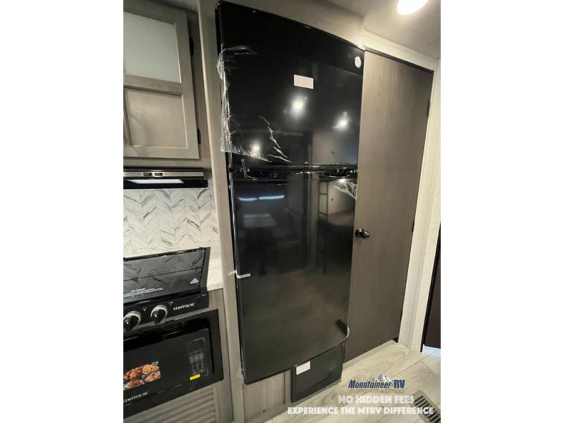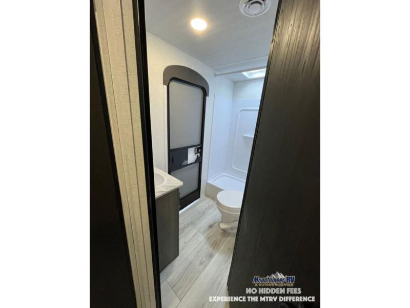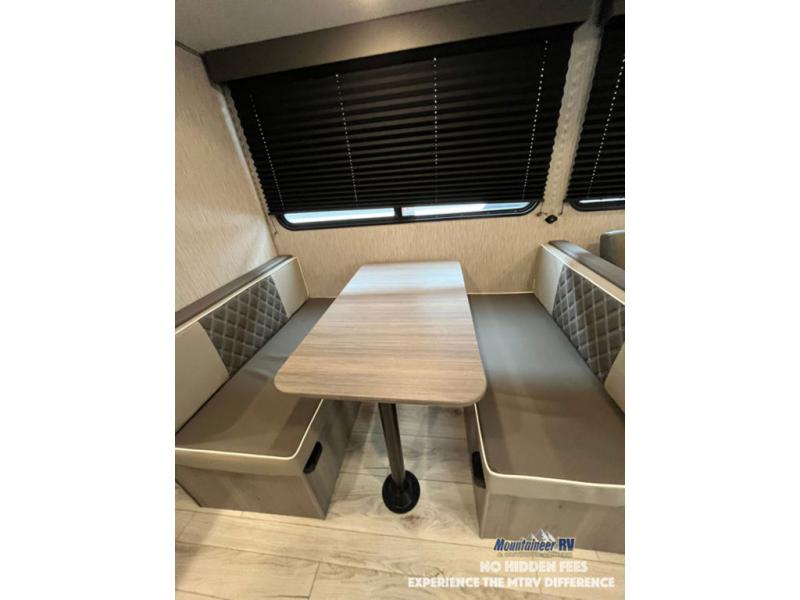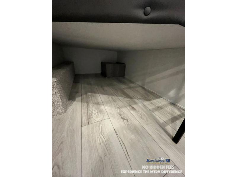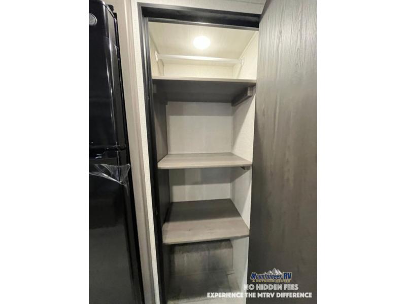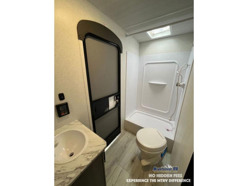 Pack your bags and head for the lake or woods in this spacious trailer! You can comfortably sleep nine to ten with the double-size bunks and the queen bed in the front private bedroom, plus the booth dinette and sofa in the main living area. There is even TV prep here if you want to add a television to the entertainment center for movie nights. The kitchen includes a 10 cu. ft. 12V refrigerator and an extra large pantry for food storage, plus a cooktop to prepare meals each day. The full bath included will let you clean up after a day of exploring outdoors, and you'll find the second entry door here for convenience!
