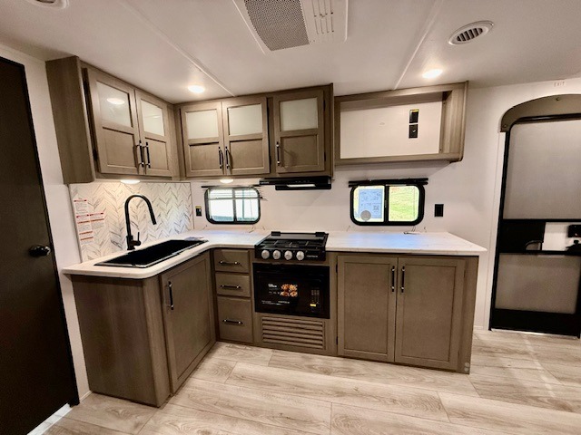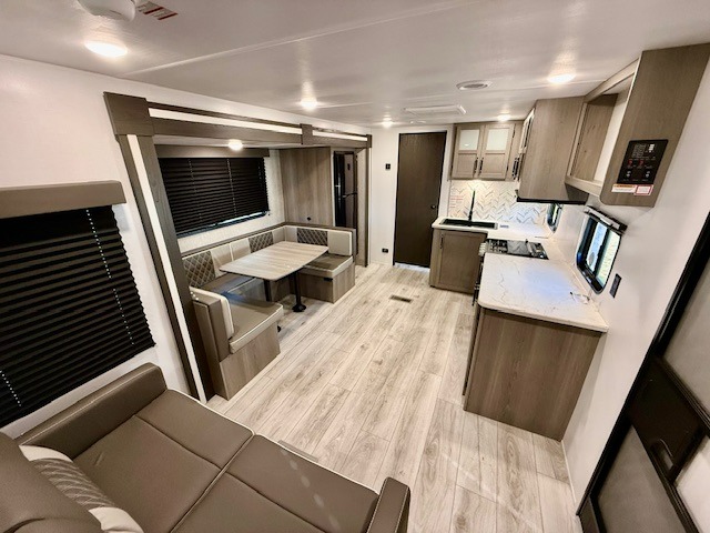 Great Bunk ModelThe 2025 Hideout 284BH is the ultimate family-friendly bunkhouse travel trailer, loaded with smart features and comfort-driven design. It offers spacious double-over-double rear bunks, a large U-shaped dinette, and a private front bedroom, making it ideal for families or groups. The full kitchen includes modern appliances, a large pantry, and ample counter space, while the entertainment center and electric fireplace create a cozy vibe. Outside, you’ll find an outdoor kitchen, power awning with LED lighting, and solid entry steps. With its durable construction and stylish interior, the 284BH is ready for unforgettable adventures.