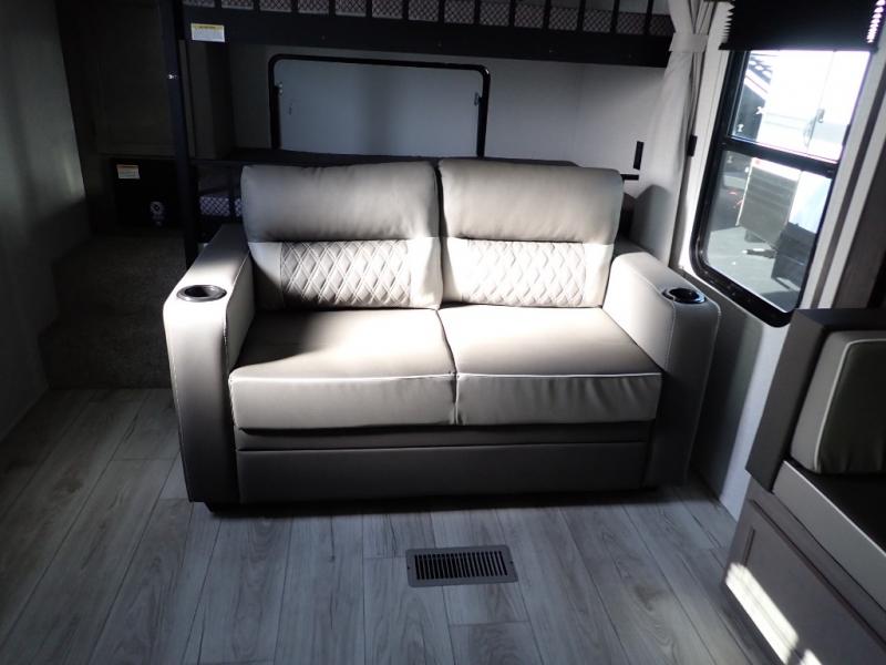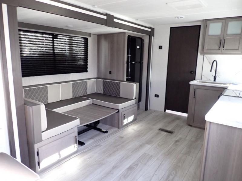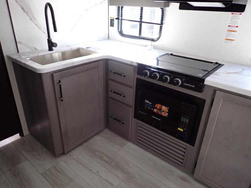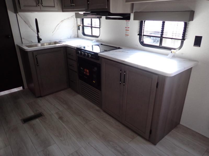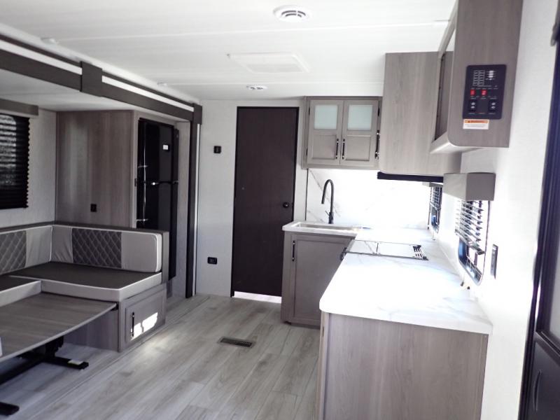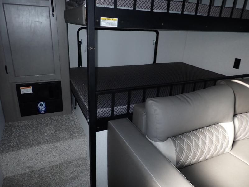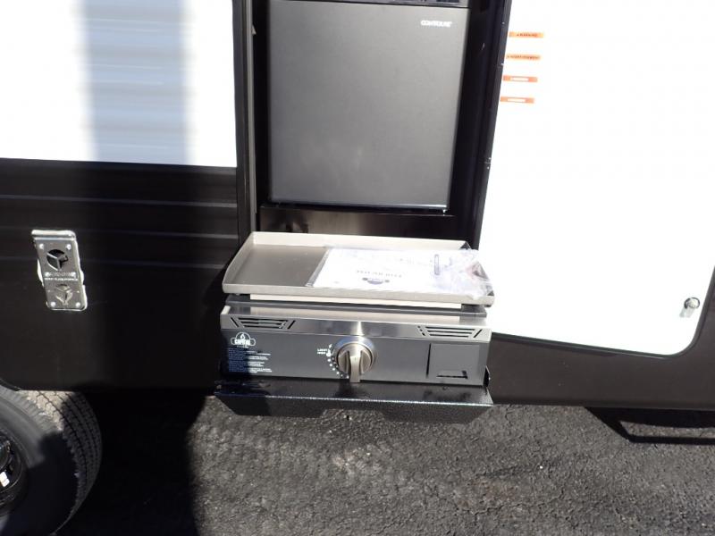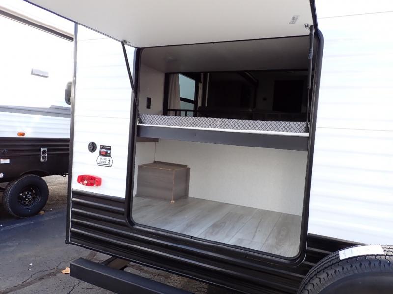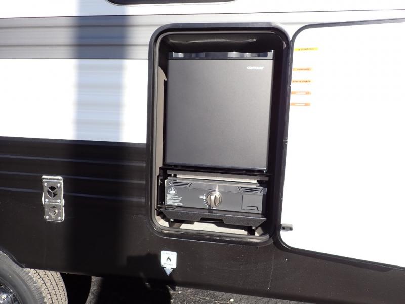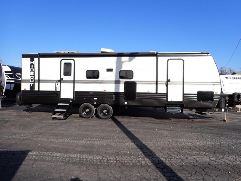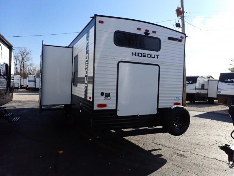 Are you looking for a travel trailer with more space, more amenities, and more sleeping space? Look no further than this Hideout! There are convenient dual entry doors for a smooth flow of traffic, a walk-through bath that will create a front master bedroom, plus bunks in the back with flip-up utility storage for your gear. And you can easily access this gear from outside using the storage door under the bunks! Everyone can meet in the main living area around the U-shaped dinette or on the sofa that be switched out for an optional tri-fold sofa or optional theater seating. And since there is TV prep you can make this space feel even more like home! The chef of your group will have everything they need to prepare meals each day, including a three burner cooktop and plenty of counter space. Head outdoors after dinner to enjoy the 21' power awning and grab a cold drink from the outdoor refrigerator!