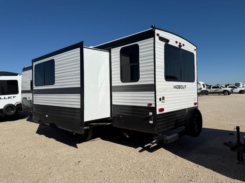 The Keystone Hideout travel trailers will be just what the doctor ordered for a stress-free holiday at your favorite campsite! There are a few exclusive features that you'll only find on a Keystone product, like the in-floor heating ducts and the Tru-fit™ slide construction. Each model has a power awning for some shade in the afternoon, and the tinted safety glass windows will prevent the harmful UV rays from getting inside. You'll also have blackout night shades that you can close when you want privacy and one-piece pressed countertops that are not only sleek looking, but easy to keep clean.