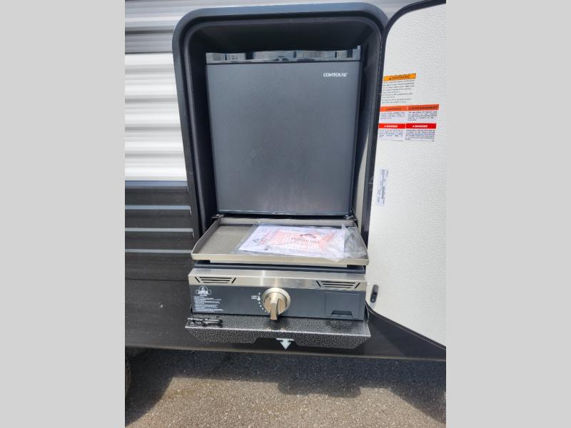 The Keystone Hideout travel trailers will be just what the doctor ordered for a stress-free holiday at your favorite campsite! There are a few exclusive features that you'll only find on a Keystone product, like the in-floor heating ducts and the Tru-fit™ slide construction. Each model has a power awning for some shade in the afternoon, and the tinted safety glass windows will prevent the harmful UV rays from getting inside. You'll also have blackout night shades that you can close when you want privacy and one-piece pressed countertops that are not only sleek looking, but easy to keep clean.