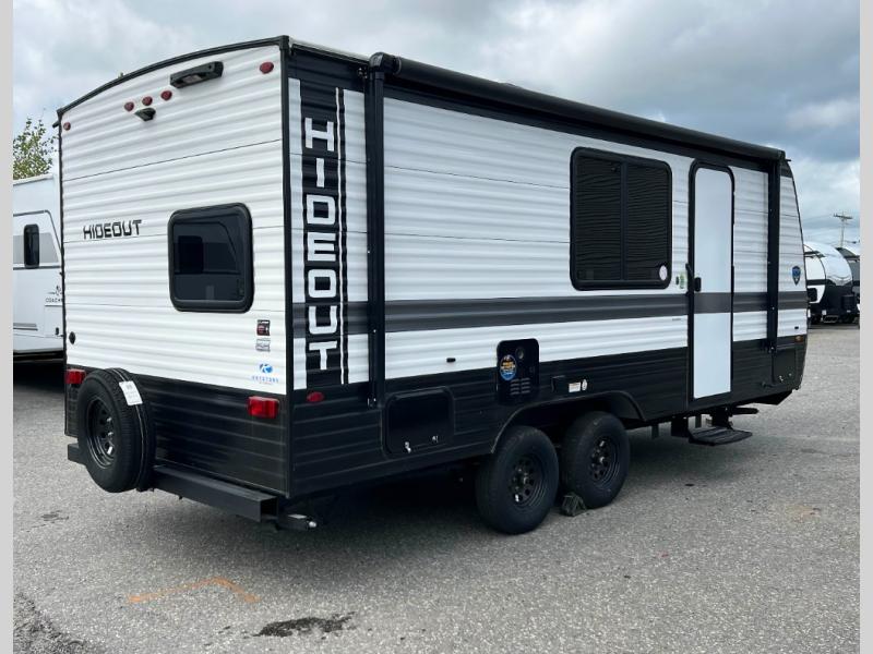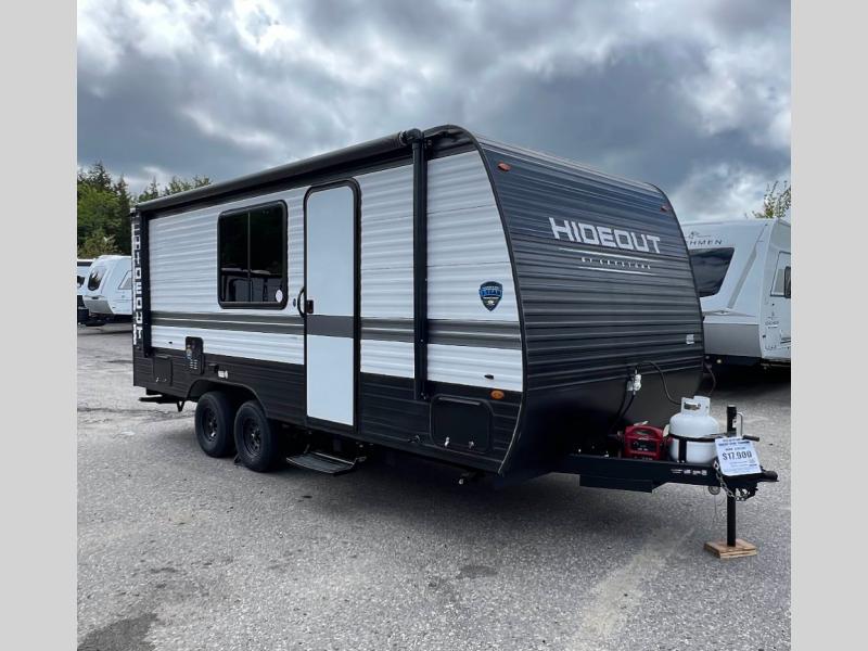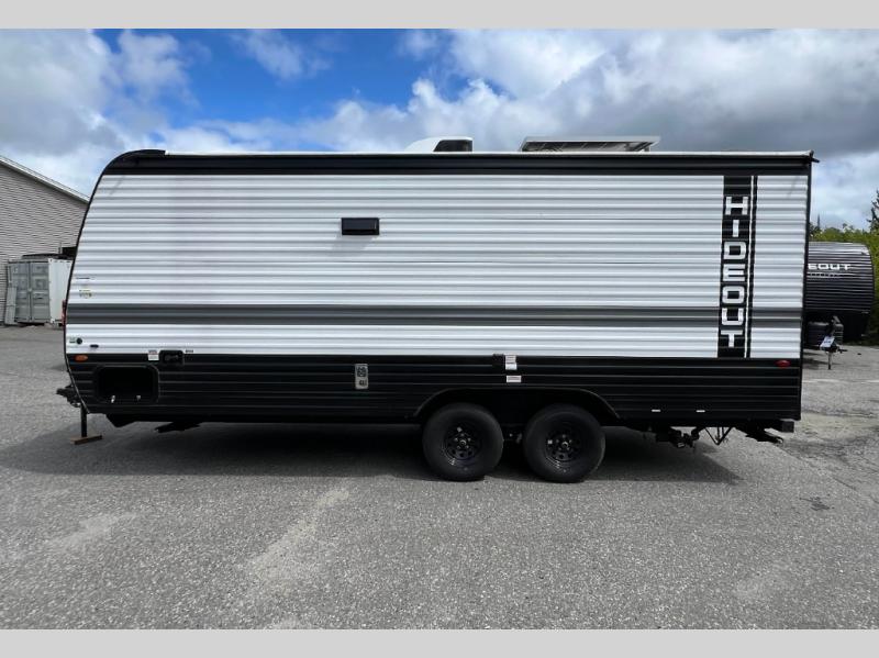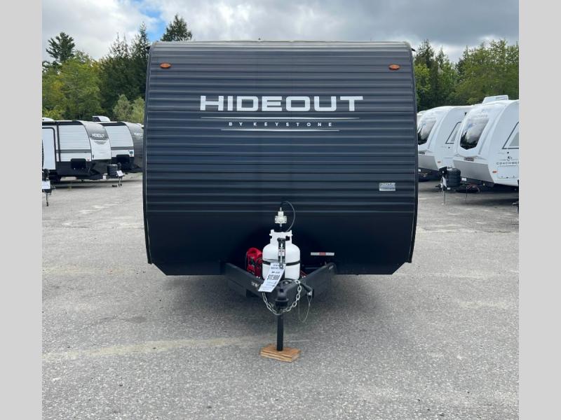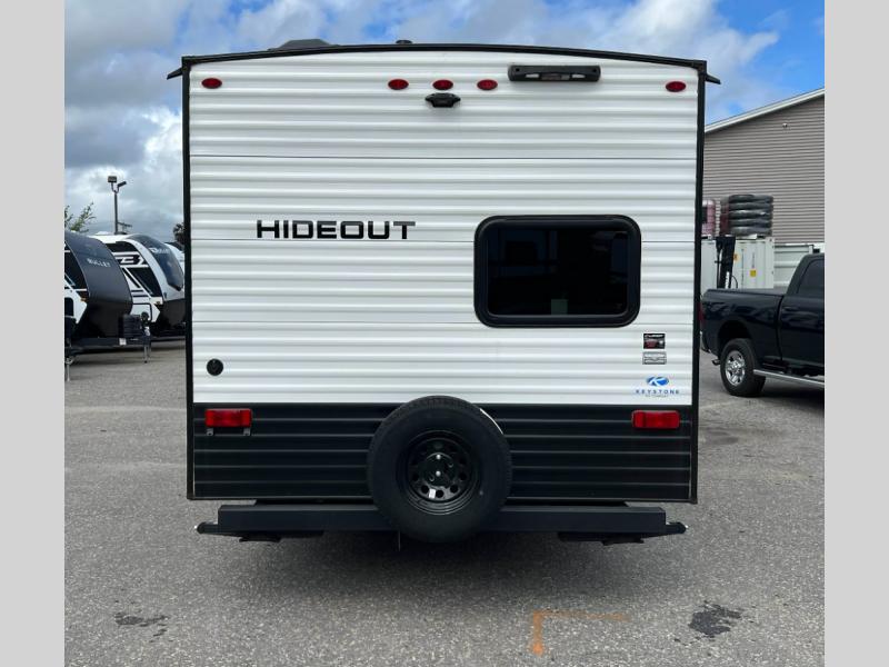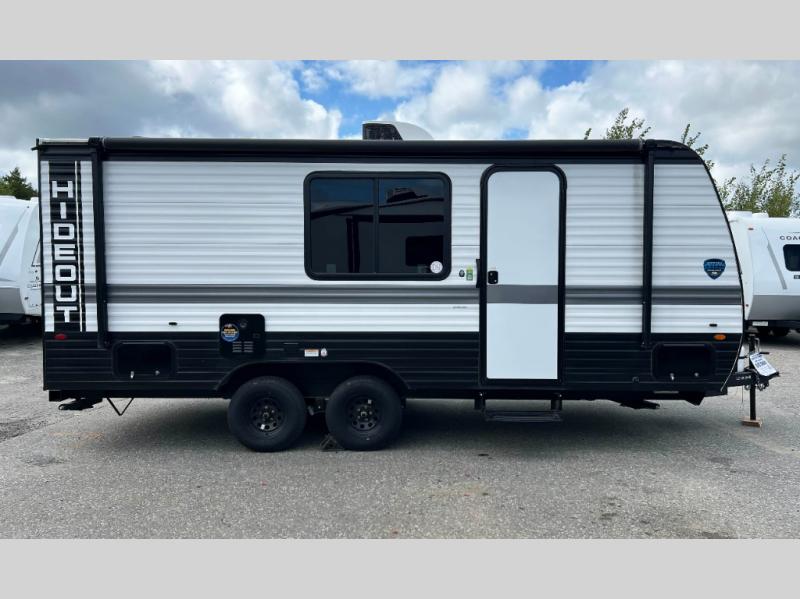Open your horizons with the Hideout Sport travel trailers by Keystone. They are compact, convenient, and lightweight; everything you're looking for in an RV! Each model features an aluminum exterior, tinted safety glass windows, and a Super Flex TPO roof membrane for added durability. The interior includes blackout night shades for added privacy and solid wood doors and drawers that will give a more at-home touch. The Girard tankless water heater is a feature you won't want to camp without, and the LED lighting will keep your space bright and open!