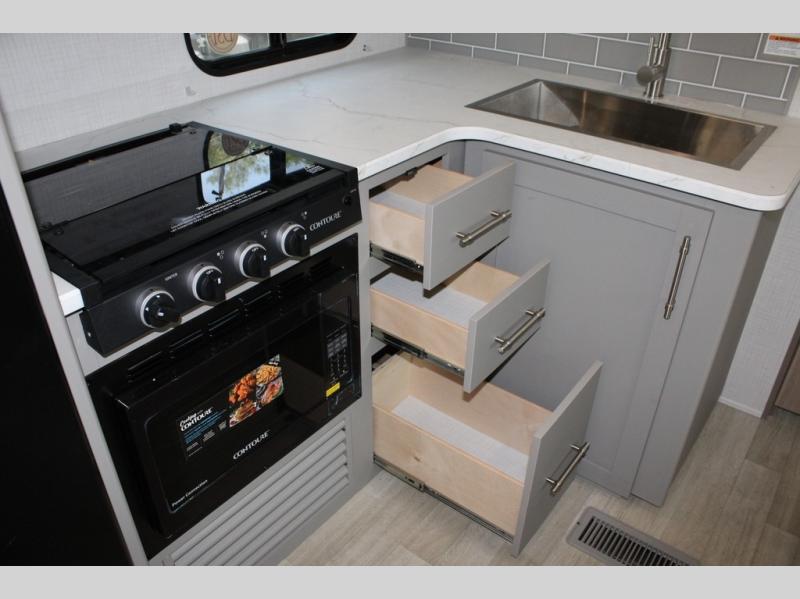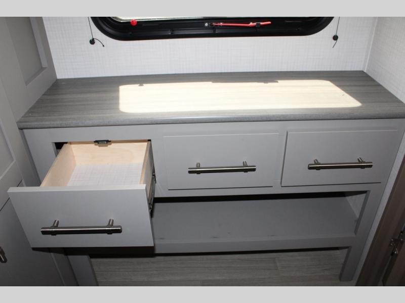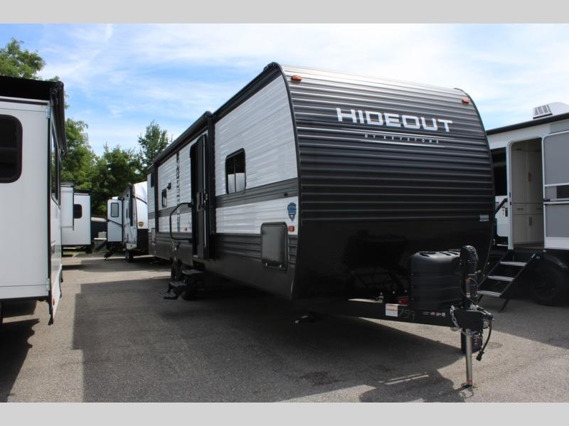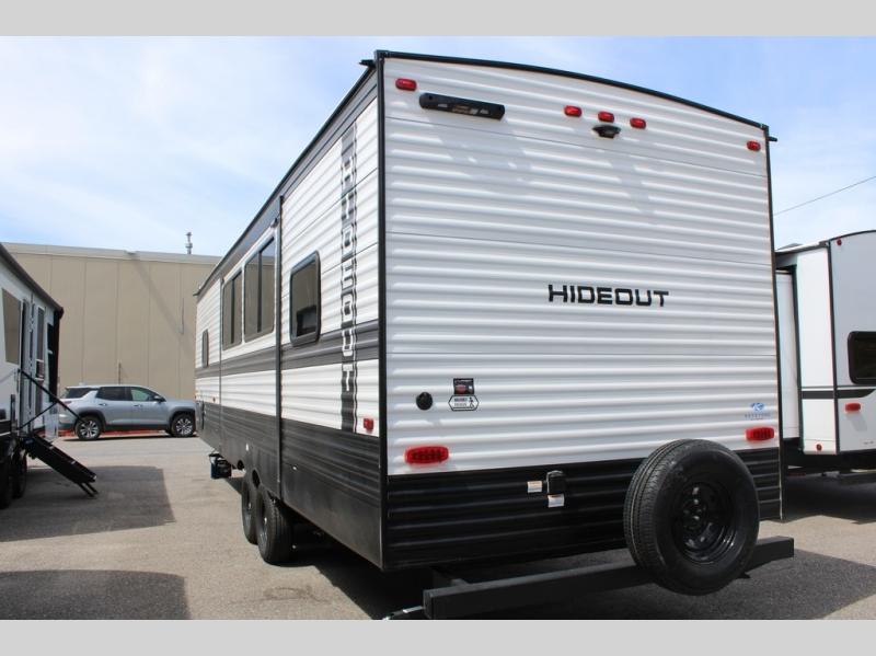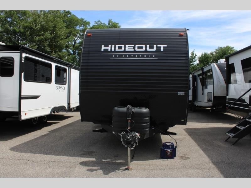 With any Hideout Sport Double Axle travel trailer by Keystone you will enjoy simplified camping solutions that won't break the bank! Each model is constructed with a durable aluminum exterior, tinted safety glass windows, a walkable roof, and an I-beam frame. There are power tongue jacks and heavy duty stabilizer jacks that will make it easier than ever to hitch up and go. An XL entry assist handle will also provide convenience, along with a power awning that will provide much wanted shade during the day. You will feel right at home with stylish decor, blackout night shades, and cozy queen bed with storage underneath!