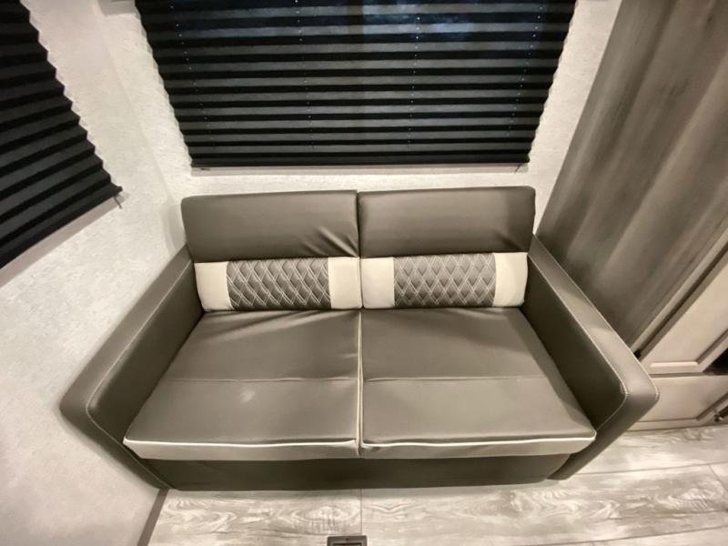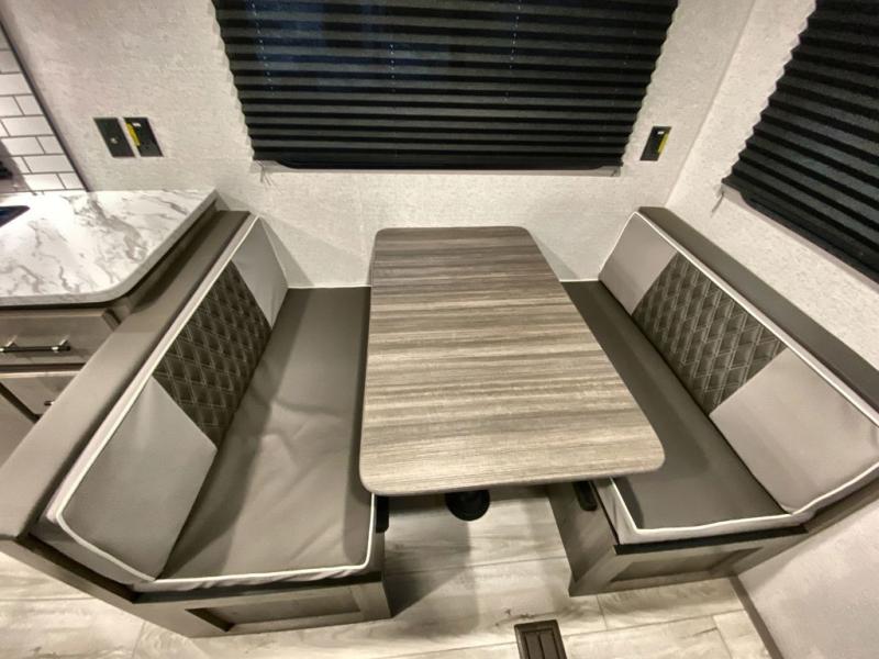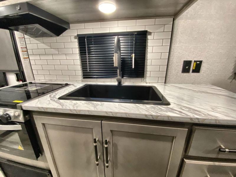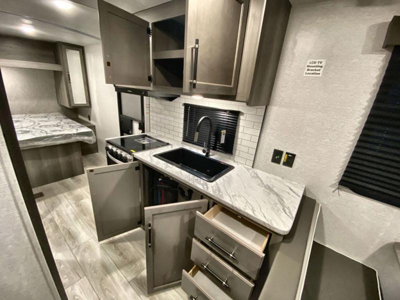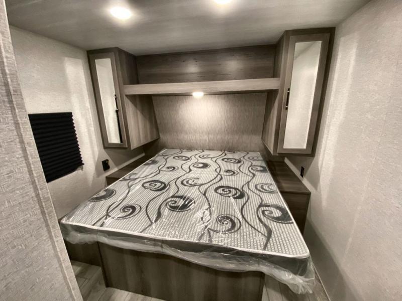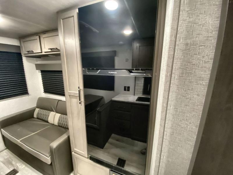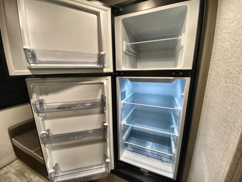 This is the perfect starter travel trailer since it includes everything you need while you're away from home. You'll enjoy the queen bed in the front bedroom with underbed storage and nightstands for your things, plus a full bath on board so you won't have to use the camp's facilities. This model includes a cooktop that will allow you to cook meals each day, and there is a pantry and a 10 cu. ft. 12V refrigerator for food storage! A booth dinette in the back provides a place to dine and the sofa will be perfect to relax on after a day outdoors. And these pieces of furniture can double as your guests sleeping space at night!
