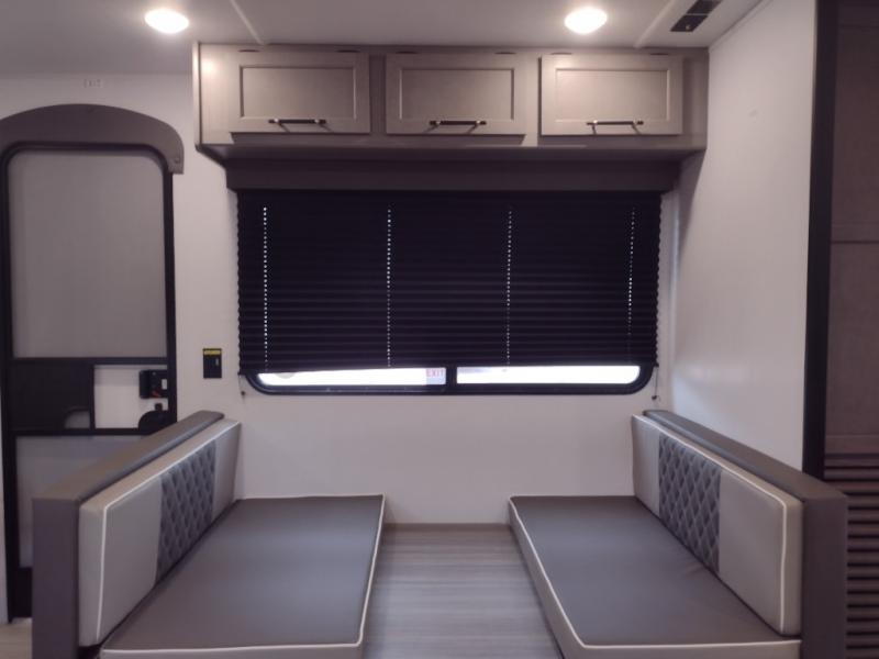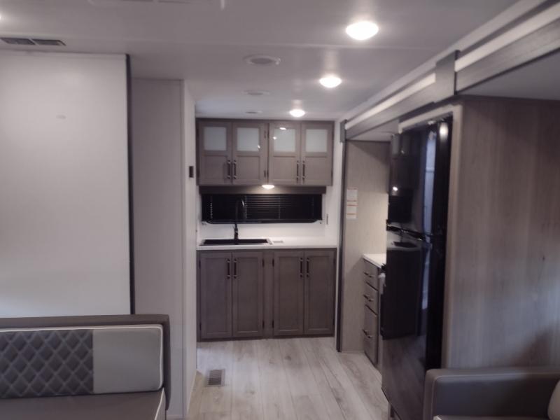 Trips to the lake are made easy in this spacious travel trailer for four to five. You can wake up feeling refreshed each day after sleeping on the queen bed, and there is a privacy curtain here if you have guests staying over. They can convert the sofa and booth dinette back into seating spaces while the chef of your group makes breakfast on the three burner range. There is also a spacious pantry and 10 cu. ft. 12V refrigerator to keep food stocked. The full bath will allow you to clean up without having to leave your camper; how convenient!