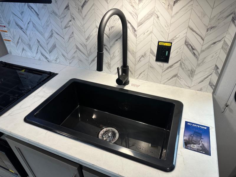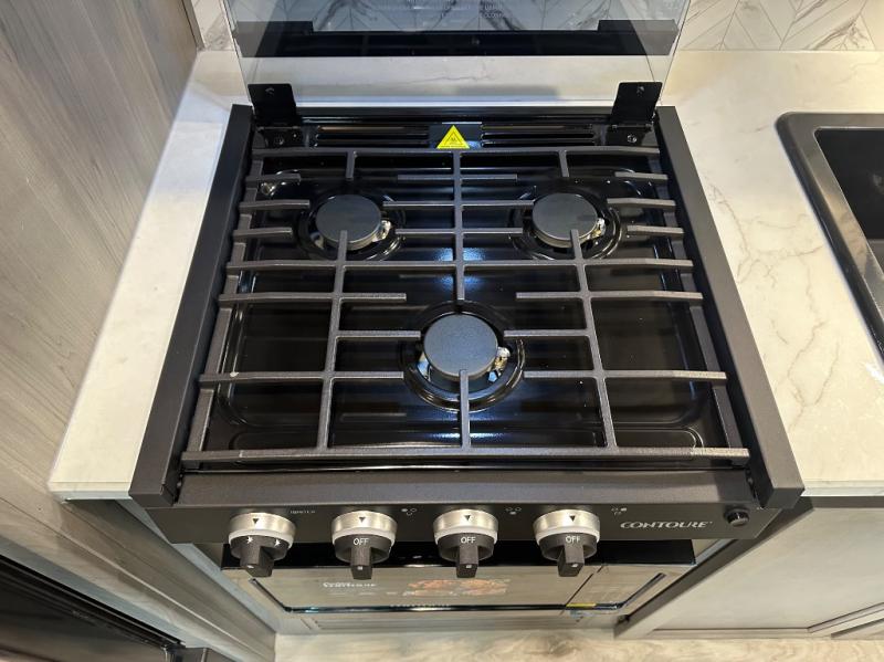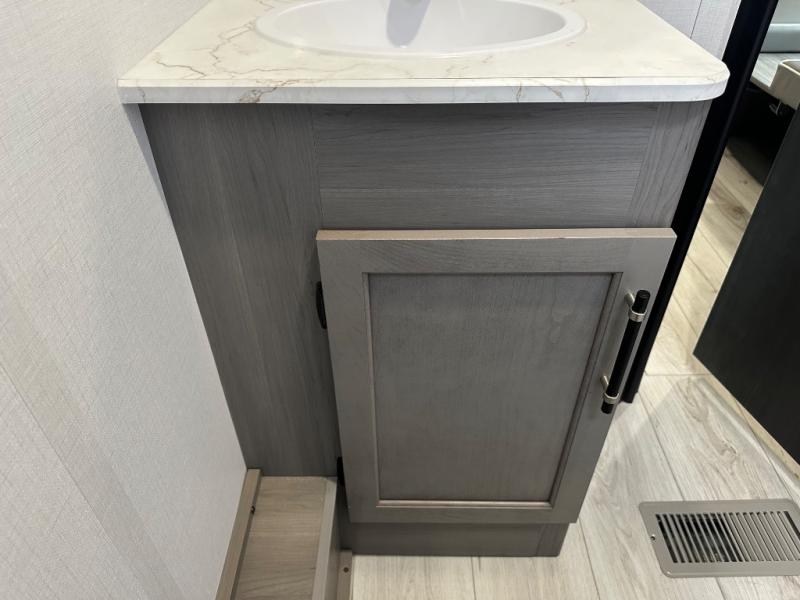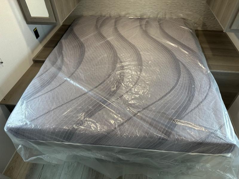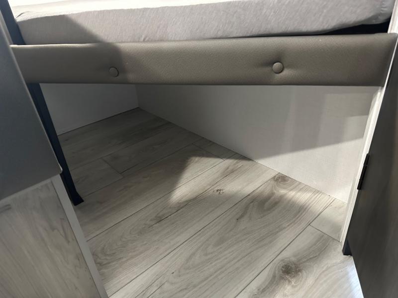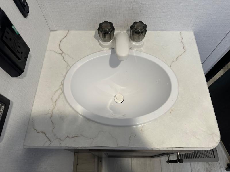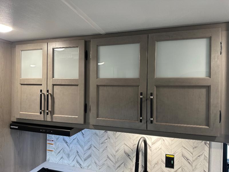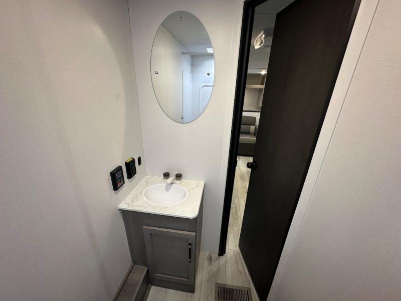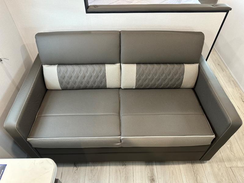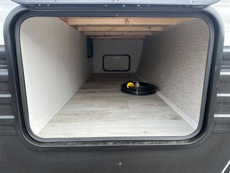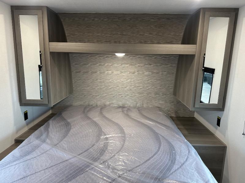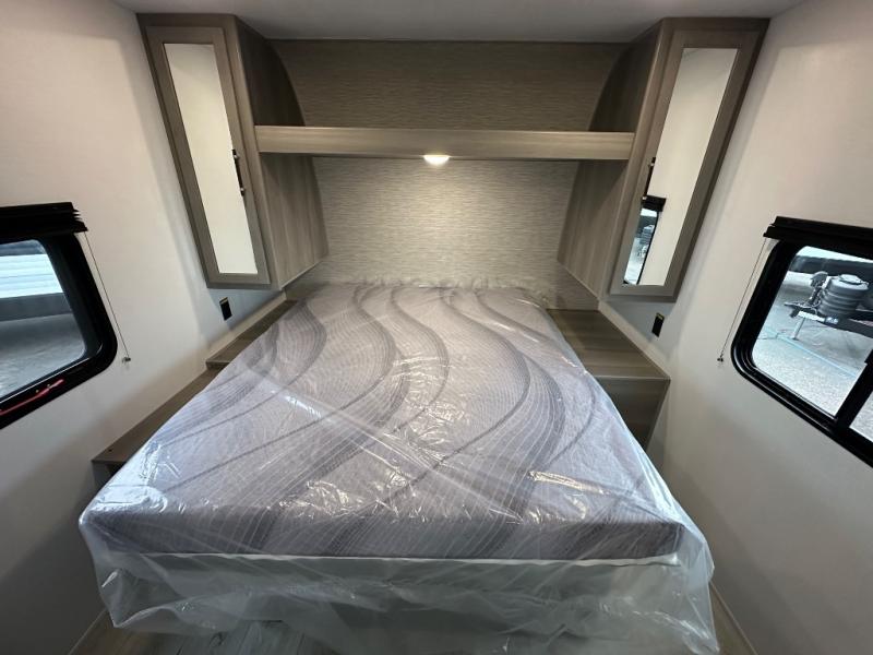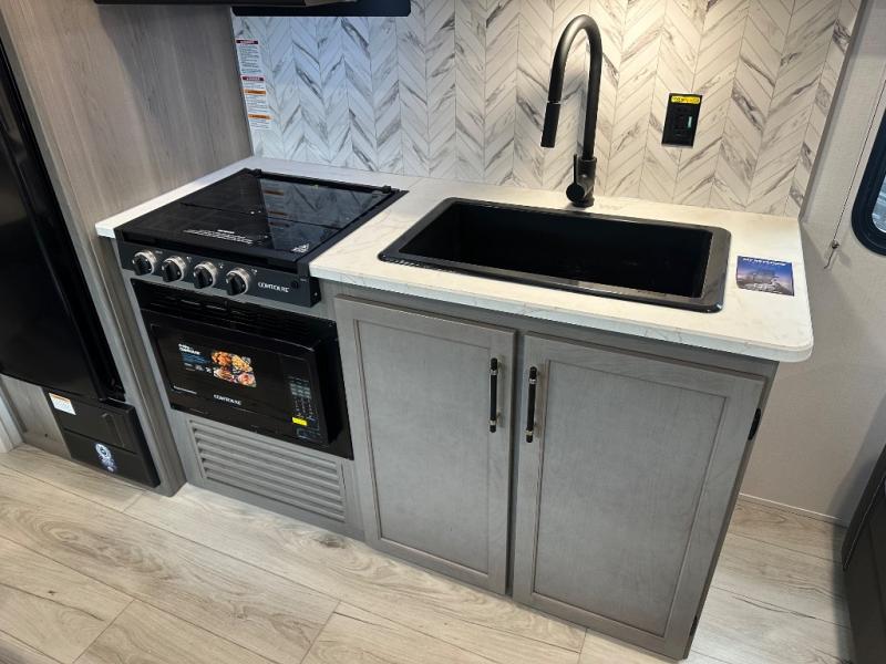 If you're looking for a travel trailer with a little more sleeping space, look no further than this unit! There are double-size bunks with inside and outside storage, a walk-around queen bed in the front bedroom, plus a sofa and booth dinette for even more sleeping space. The kitchen comes with a cooktop to cook meals on, a sink for clean up, and a 10 cu. ft. 12V refrigerator to store the milk and eggs. You will also find TV prep in this model if you enjoy movie nights while at the campground.