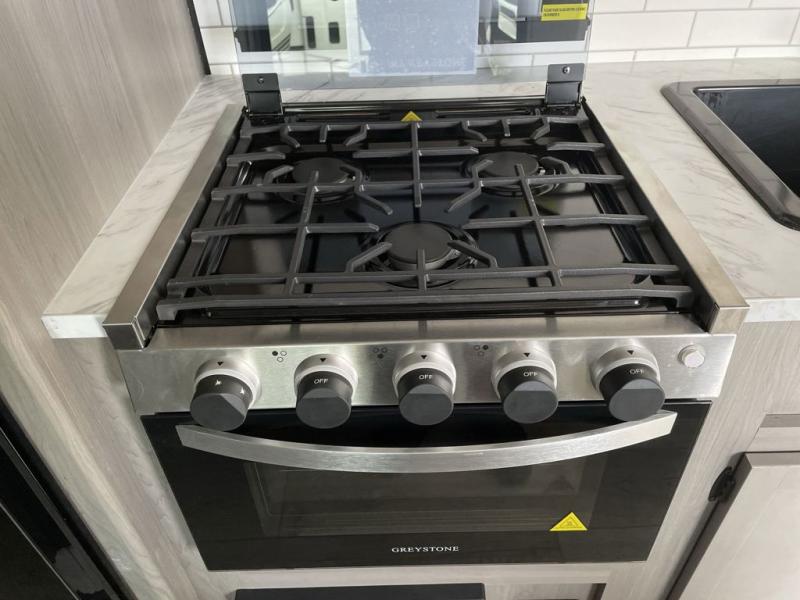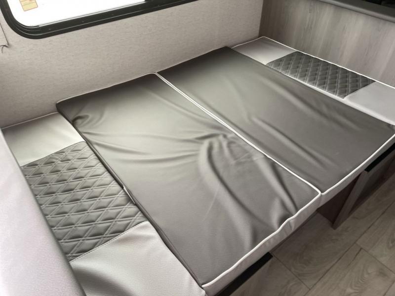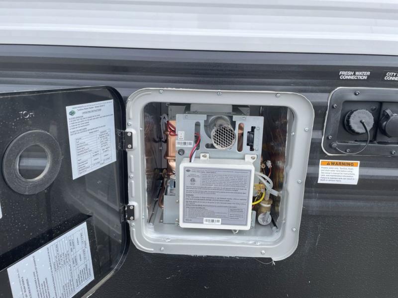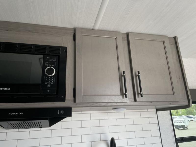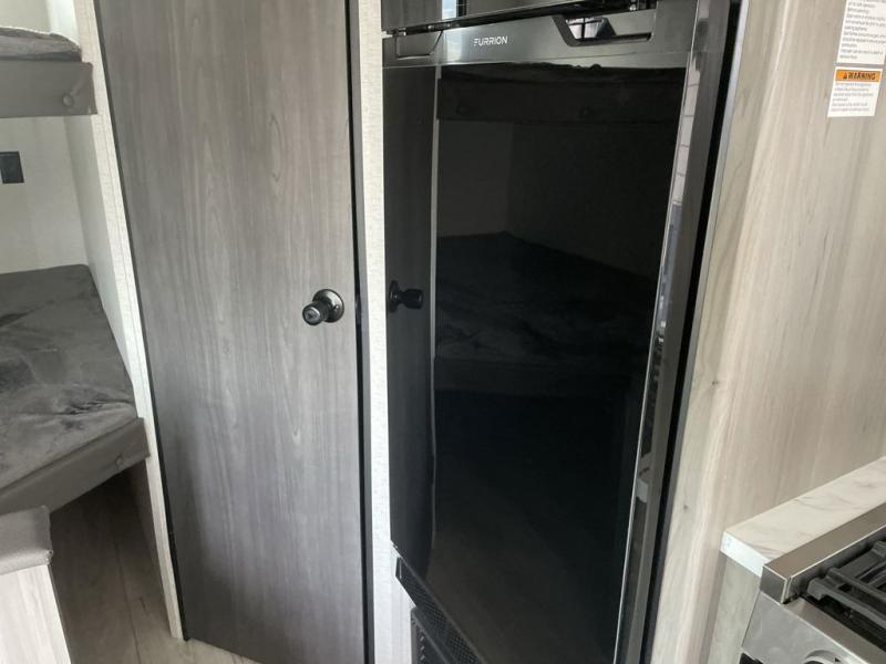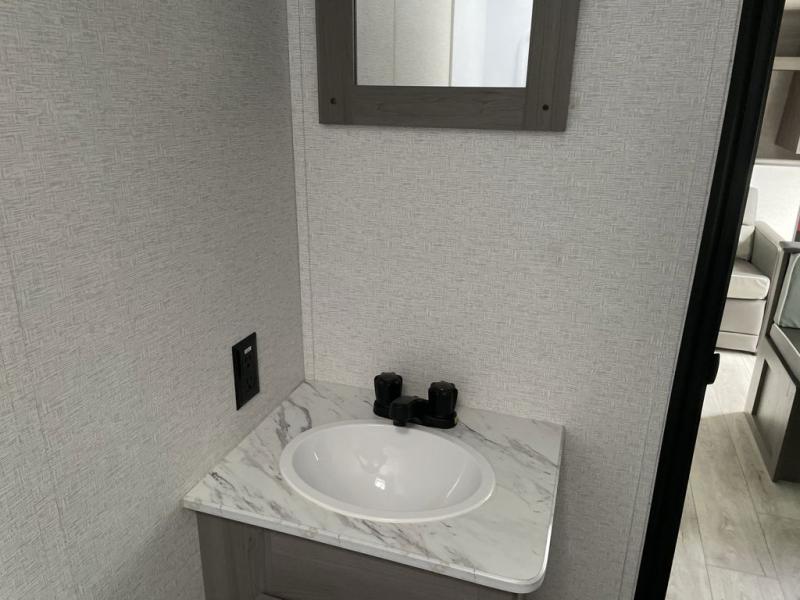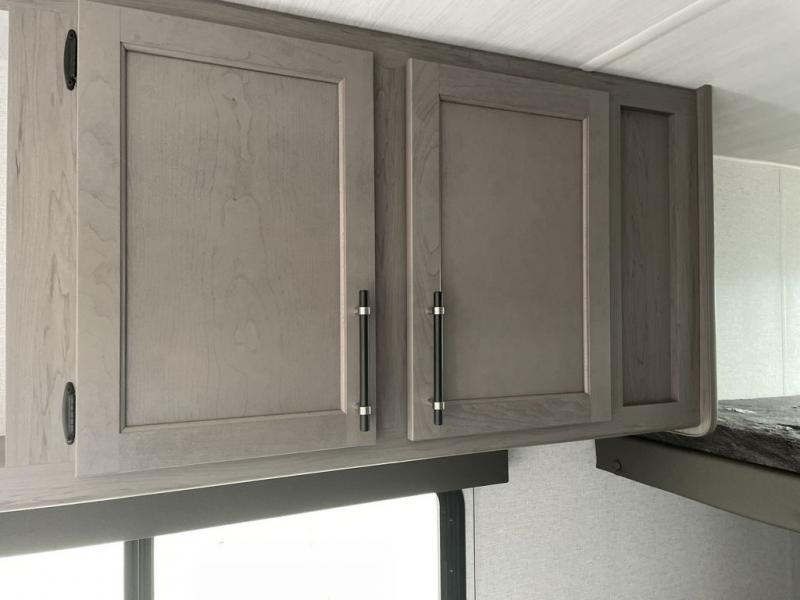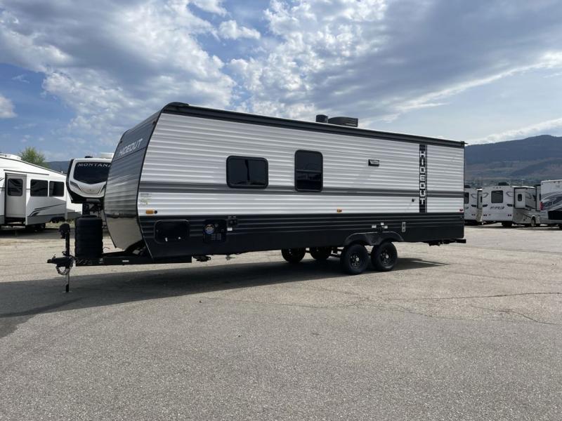 If you're looking for a travel trailer with a little more sleeping space, look no further than this Hideout Sport! There are double-size bunks with inside and outside storage, a walk-around queen bed in the front bedroom, plus a sofa and booth dinette for even more sleeping space. The kitchen comes with a cooktop to cook meals on, a sink for clean up, and a 10 cu. ft. 12V refrigerator to store the milk and eggs. You will also find TV prep in this model if you enjoy movie nights while at the campground.