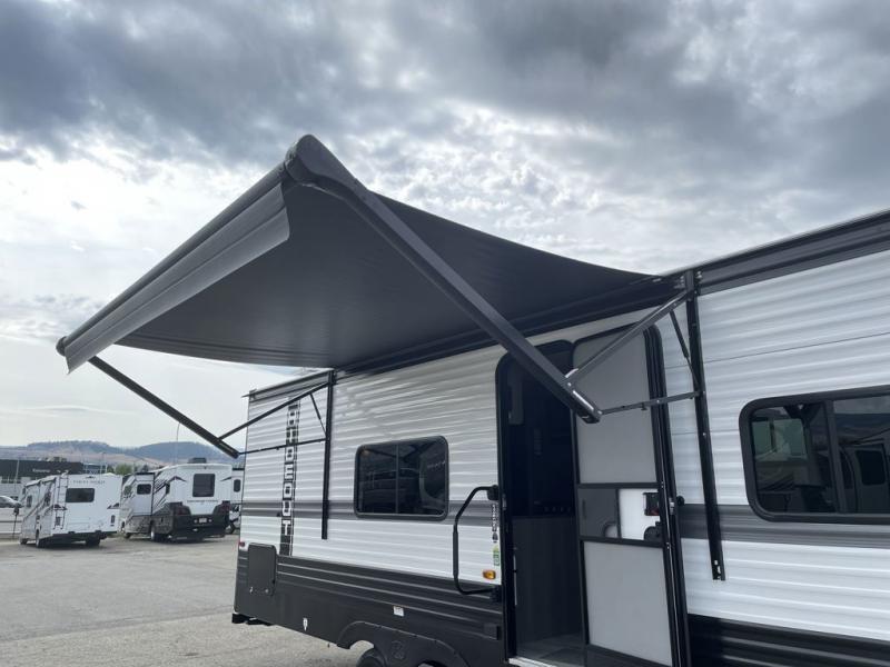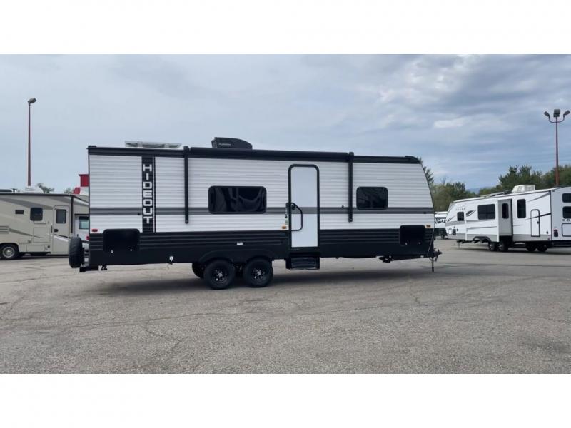 With any Hideout Sport Double Axle travel trailer by Keystone you will enjoy simplified camping solutions that won't break the bank! Each model is constructed with a durable aluminum exterior, tinted safety glass windows, a walkable roof, and an I-beam frame. There are power tongue jacks and heavy duty stabilizer jacks that will make it easier than ever to hitch up and go. An XL entry assist handle will also provide convenience, along with a power awning that will provide much wanted shade during the day. You will feel right at home with stylish decor, blackout night shades, and cozy queen bed with storage underneath!