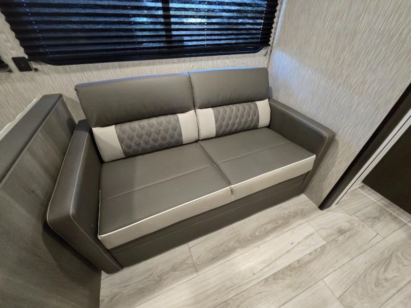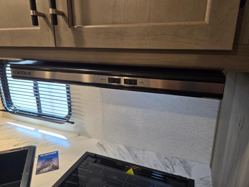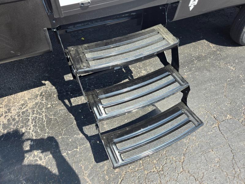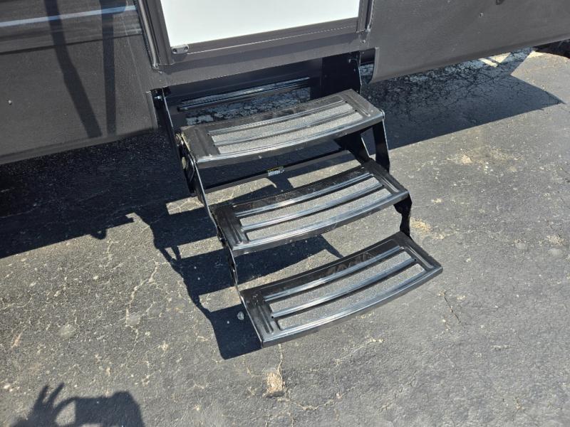 A power awning with LED lighting creates a shaded, welcoming outdoor space, perfect for relaxing or dining under the stars. The exterior kitchen adds extra convenience, letting you cook outdoors while staying connected with the fun.