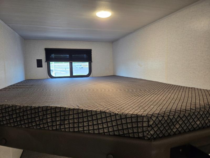 A large slide, front private bedroom, and double-size bunks make this Hideout Sport the ultimate travel trailer!