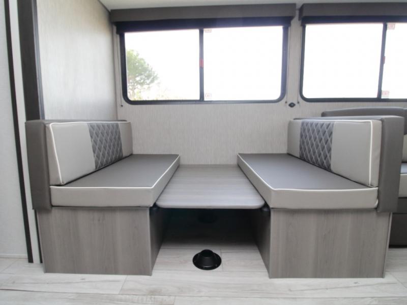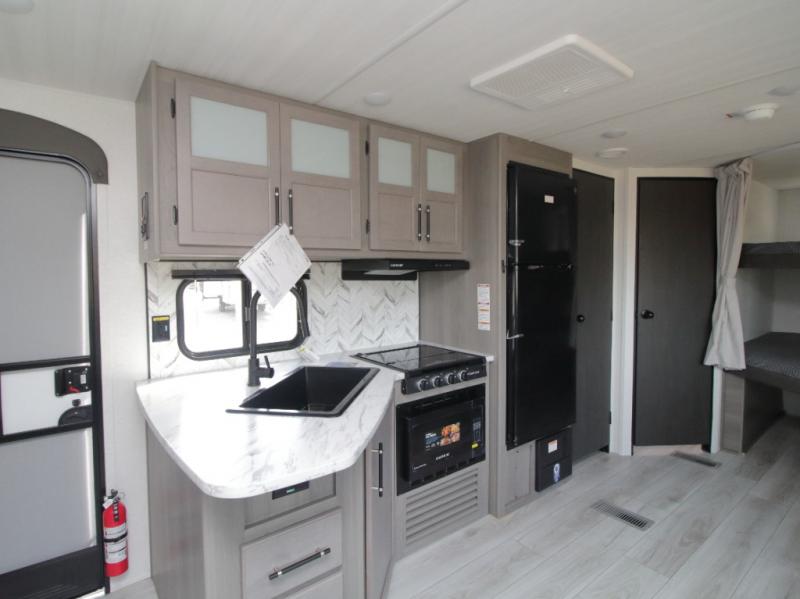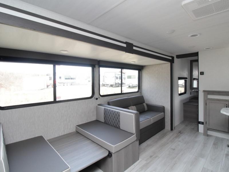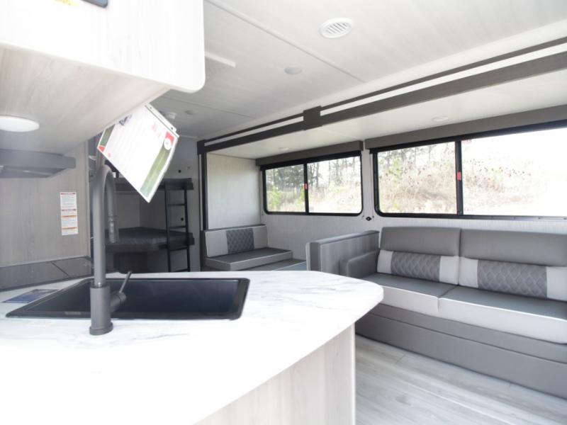 The Keystone Hideout Sport 261BH is built for family adventures, offering a spacious interior with a large slide-out for extra room to relax. Sleep up to nine or ten people with the double-size bunks, a private queen bed, a booth dinette, and a sofa—perfect for family getaways or trips with friends. The booth dinette and sofa also provide comfortable seating for meals and entertainment, with TV prep ready for your favorite shows or movie nights.