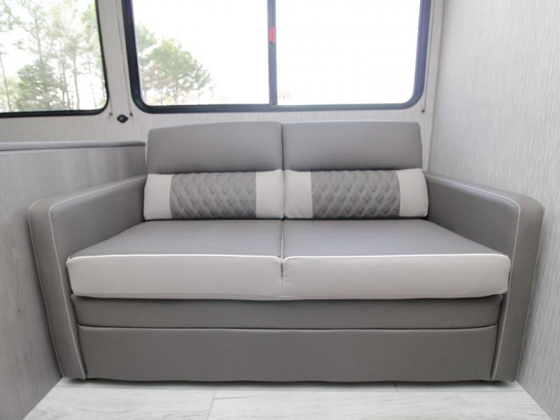 Step inside to stylish decor, blackout night shades, and a queen bed with under-bed storage, ensuring a comfortable stay wherever you travel. The XL entry assist handle makes getting in and out easy for all ages, and the power awning provides shade so you can enjoy the outdoors in comfort.