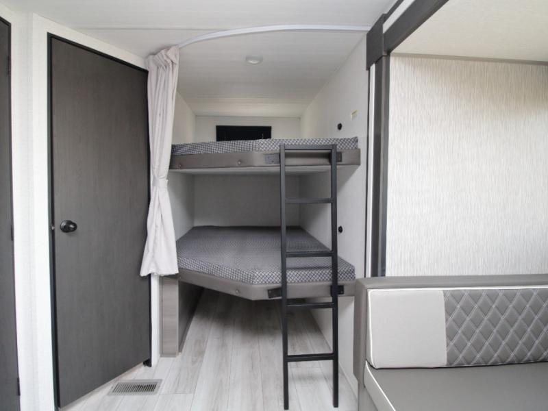 A large slide, front private bedroom, and double-size bunks make this Hideout Sport the ultimate travel trailer!