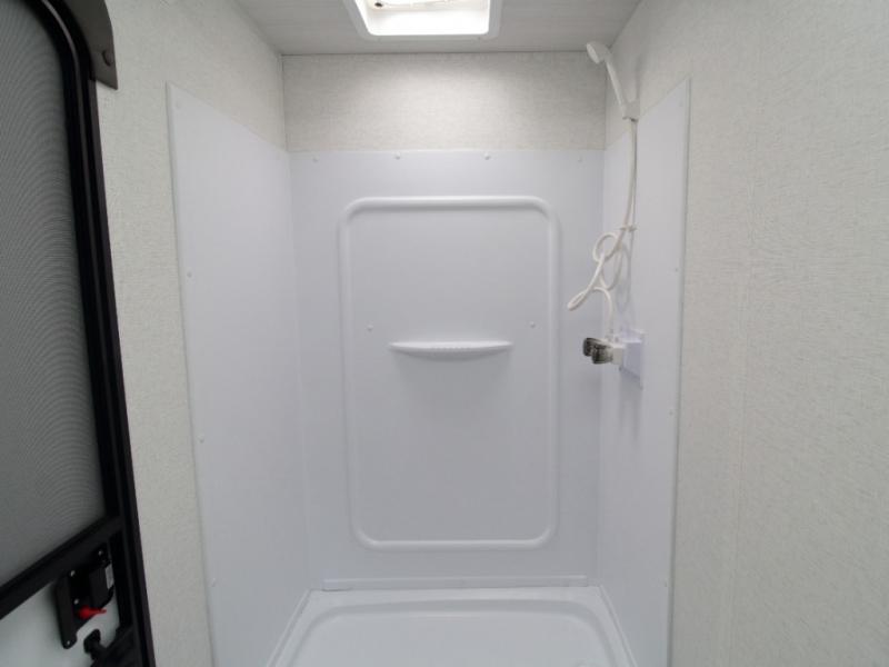 Cooking on the road is easy with a 10 cu. ft. 12V refrigerator, a cooktop, and an extra-large pantry for all your food and snacks. Whether you're preparing quick breakfasts before heading out or cooking full meals after a long day, this kitchen has everything you need.