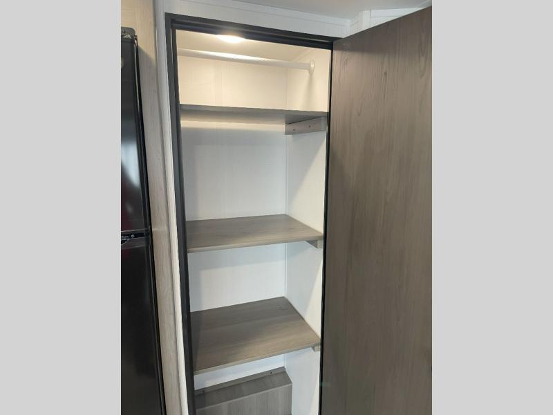Pack your bags and head for the lake or woods in this spacious trailer! You can comfortably sleep nine to ten with the double-size bunks and the queen bed in the front private bedroom, plus the booth dinette and sofa in the main living area. There is even TV prep here if you want to add a television to the entertainment center for movie nights. The kitchen includes a 10 cu. ft. 12V refrigerator and an extra large pantry for food storage, plus a cooktop to prepare meals each day. The full bath included will let you clean up after a day of exploring outdoors, and you'll find the second entry door here for convenience!