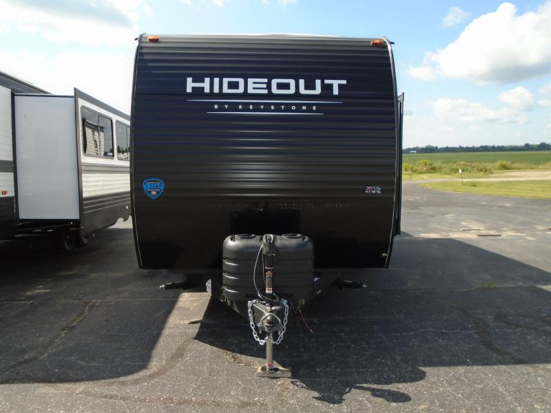 With any Hideout Sport Double Axle travel trailer by Keystone you will enjoy simplified camping solutions that won't break the bank! Each model is constructed with a durable aluminum exterior, tinted safety glass windows, a walkable roof, and an I-beam frame. There are power tongue jacks and heavy duty stabilizer jacks that will make it easier than ever to hitch up and go. An XL entry assist handle will also provide convenience, along with a power awning that will provide much wanted shade during the day. You will feel right at home with stylish decor, blackout night shades, and cozy queen bed with storage underneath!