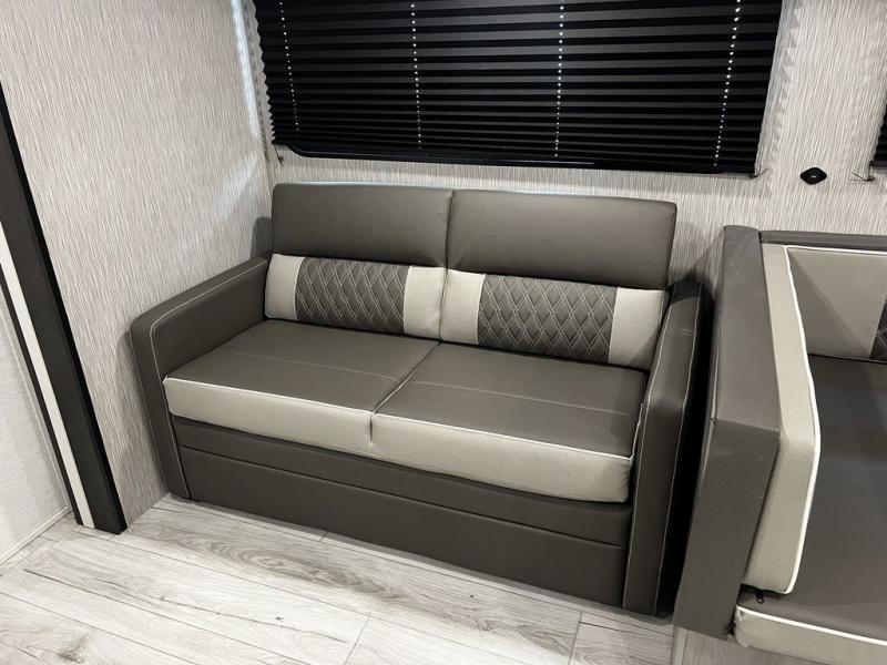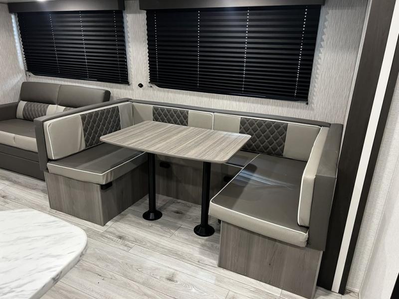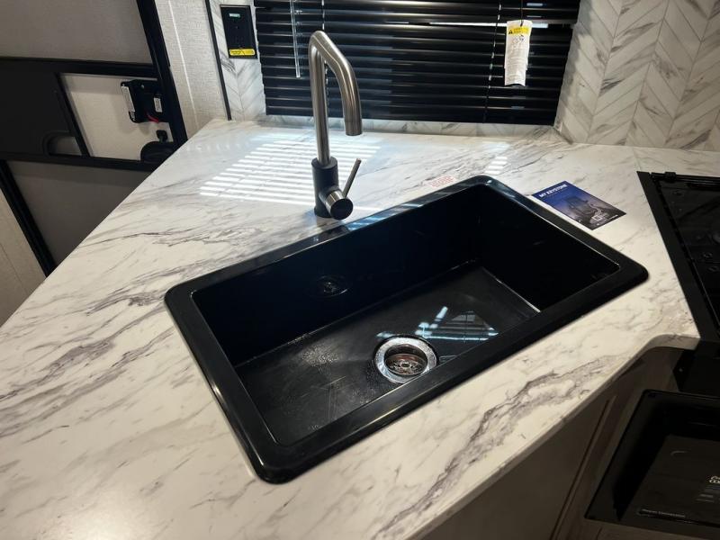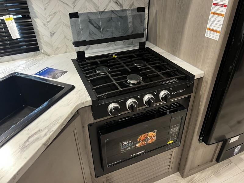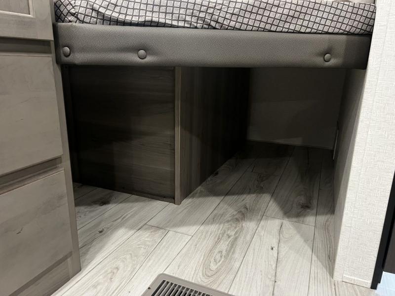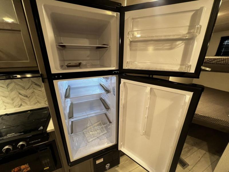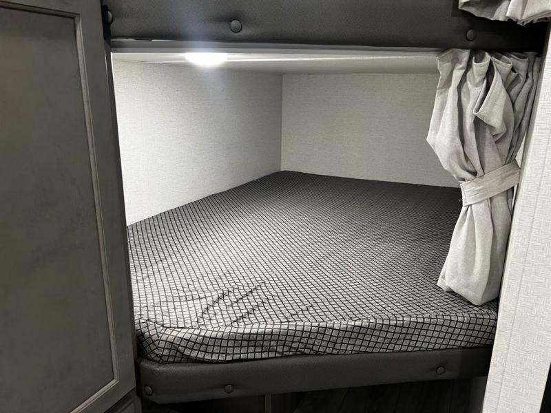 A large slide, front private bedroom, and double-size bunks make this Hideout Sport Double Axle the ultimate travel trailer! You will enjoy a walk-around queen bed in the bedroom plus dual closets and nightstands for your things. The full bath is towards the back and beside the bunks for easy nighttime use, and there is a pass-through storage outside for your gear. Head to the kitchen to prepare lunch on the cooktop, then dine at the U-shaped dinette and sofa within the large slide. If the weather is nice, you might just want to cook outdoors on the outside kitchen under the 18' power awning!