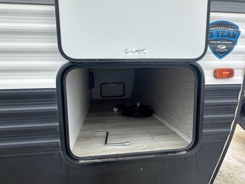 Built with Keystone’s signature durability and value, the Hideout Sport is designed to last. From the tough aluminum exterior and I-beam frame, to the tinted safety glass windows and walkable roof, every detail is engineered with reliability in mind. Convenience features like a power tongue jack, heavy-duty stabilizer jacks, and an XL entry assist handle make setup quick and simple, so you can spend less time getting ready and more time enjoying your trip.