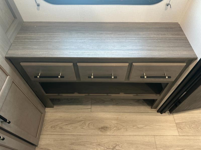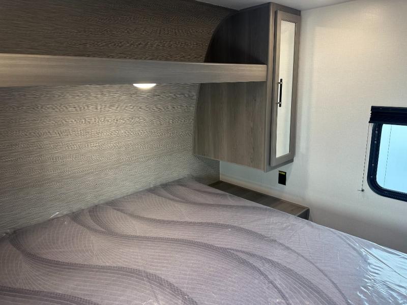 Step inside and experience a layout designed for maximum comfort and smart storage. The highlight for large families? A private rear bunkhouse with triple bunks, its own dresser and closet, giving the kids (or your guests) their own dedicated space. Meanwhile, up front, you'll find a peaceful private bedroom with a queen bed, dual nightstands, and dual wardrobes—the perfect retreat after a long day of exploring.