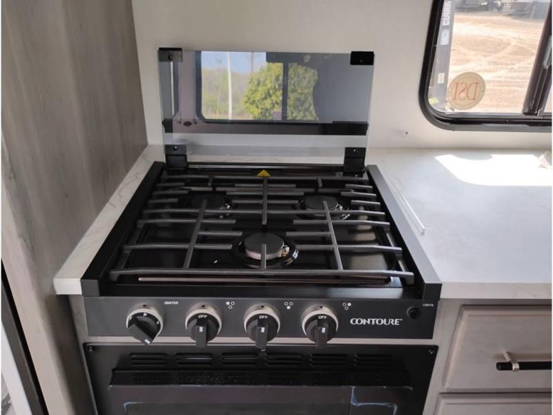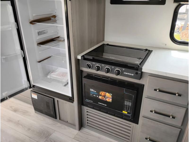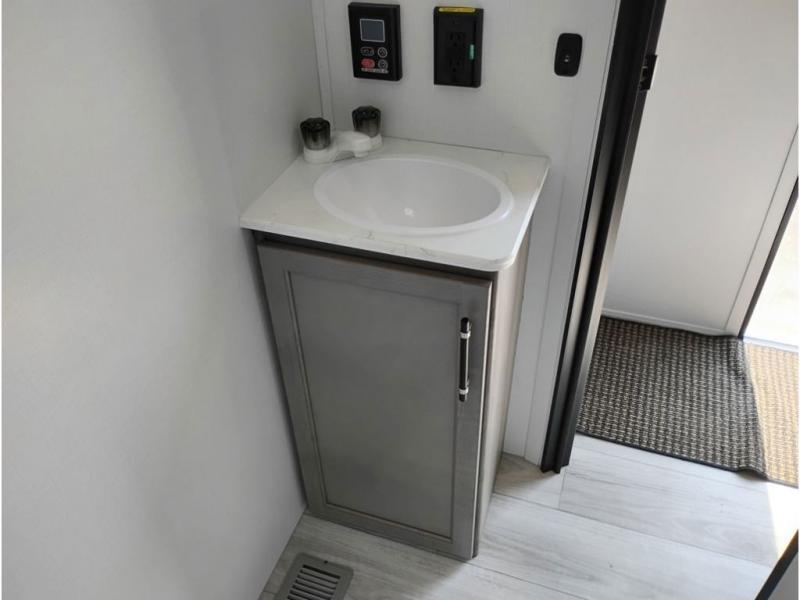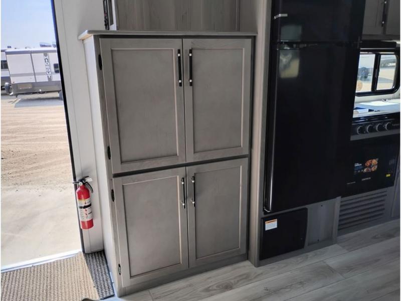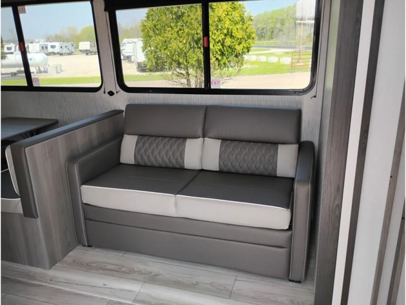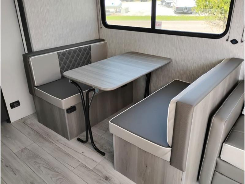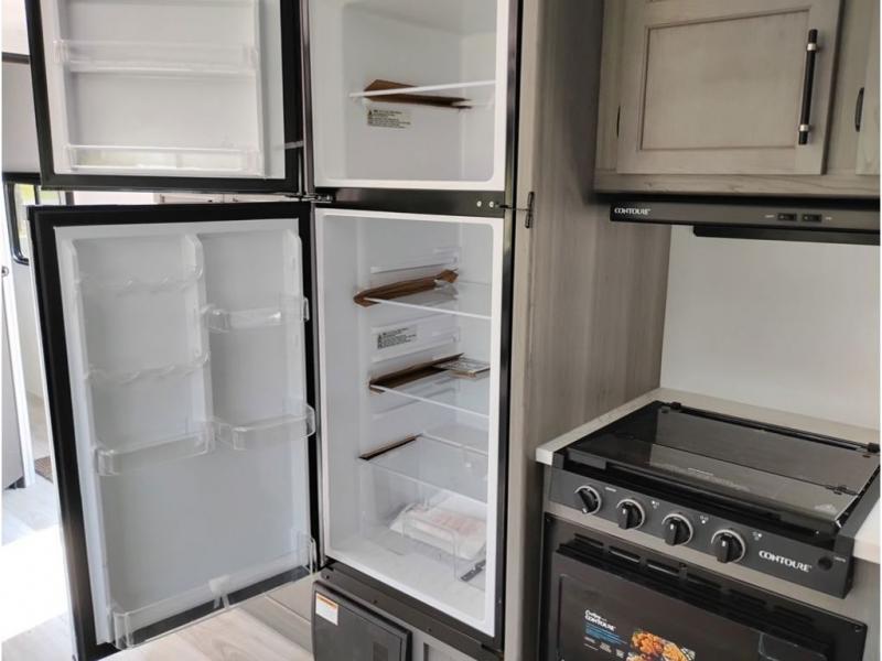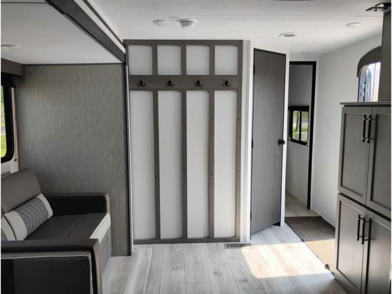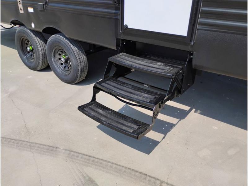 If you enjoy camping with extra friends and family, this travel trailer will be perfect for you! There is a rear bunkhouse with triple bunks, a dresser, plus a closet, making this room perfect for guests. Up front you'll find the private bedroom with a queen bed, dual nightstands and dual closets for your things, and the full bath is close by for convenience. The chef of your group will have a cooktop to prepare meals, ample counter space, plus a pantry for dry goods and snacks. Your crew can play a game at the booth dinette or relax on the sofa while dinner is being made, or they can relax outdoors under the 16' power awning!