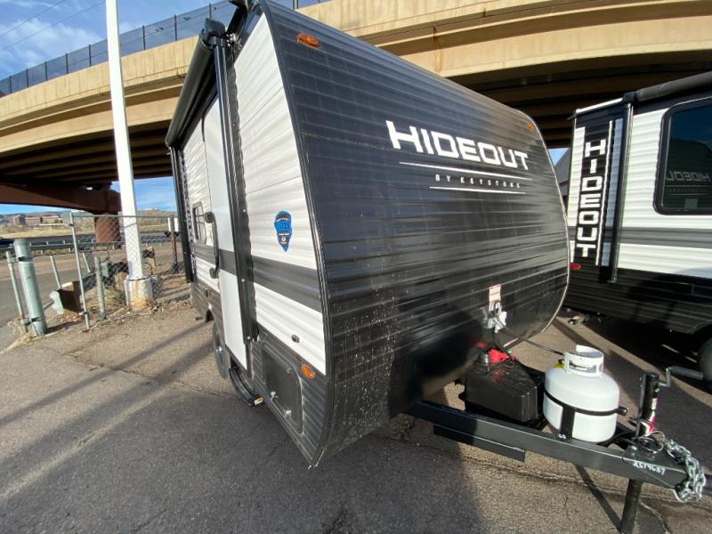Open your horizons with the Hideout Sport Single Axle travel trailers by Keystone. They are compact, convenient, and lightweight; everything you're looking for in an RV! Each model features an aluminum exterior, tinted safety glass windows, and a Super Flex TPO roof membrane for added durability. The interior includes blackout night shades for added privacy and solid wood doors and drawers that will give a more at-home touch. The Girard tankless water heater is a feature you won't want to camp without, and the LED lighting will keep your space bright and open!