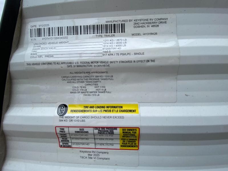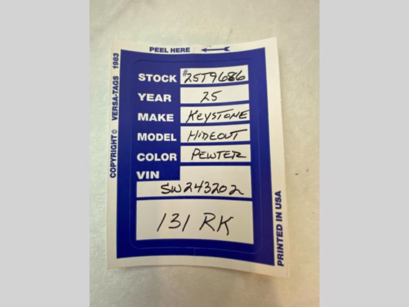 New 2025 Keystone RV Hideout Sport Single Axle 131RK Travel Trailer