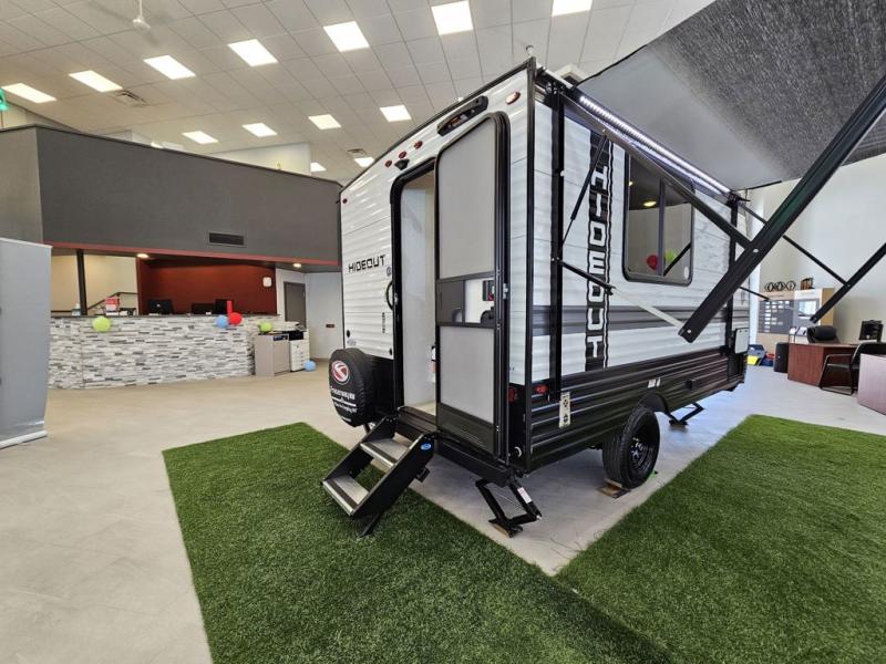 Open your horizons with the Hideout Sport Single Axle travel trailers by Keystone. They are compact, convenient, and lightweight; everything you're looking for in an RV! Each model features an aluminum exterior, tinted safety glass windows, and a Super Flex TPO roof membrane for added durability. The interior includes blackout night shades for added privacy and real wood doors and drawers that will give a more at-home touch. The Girard tankless water heater is a feature you won't want to camp without, and the LED lighting will keep your space bright and open!
