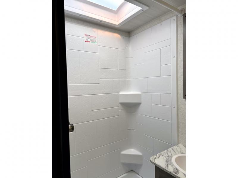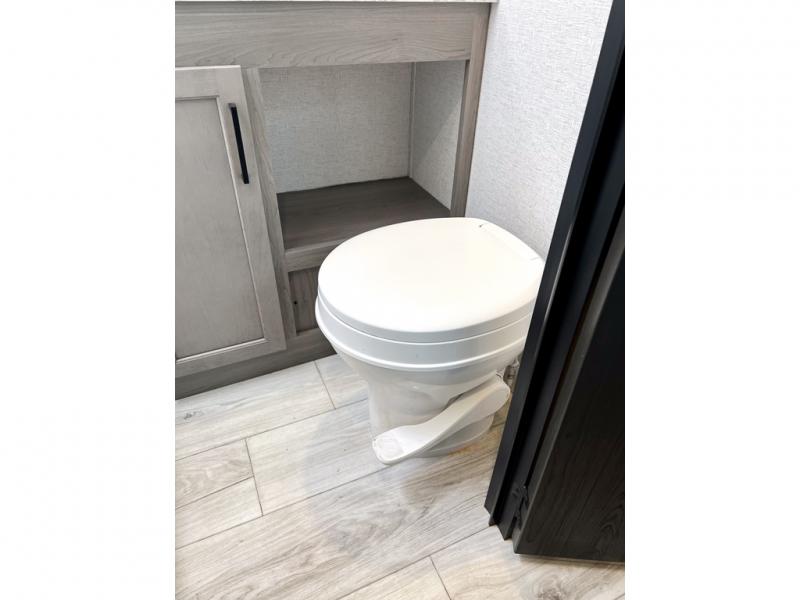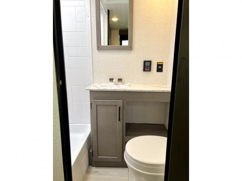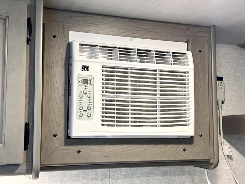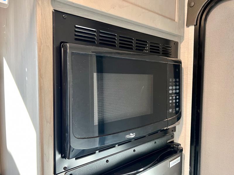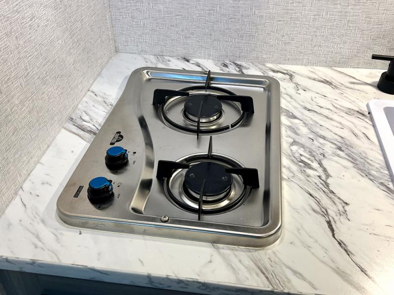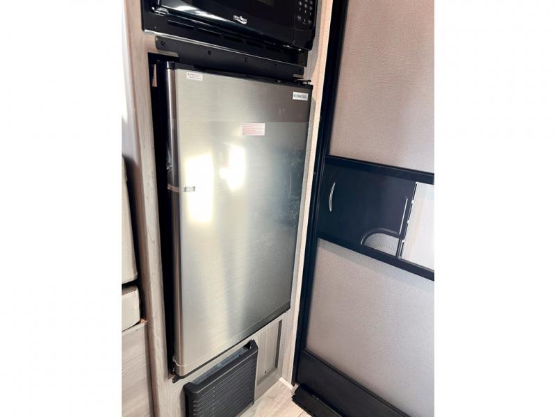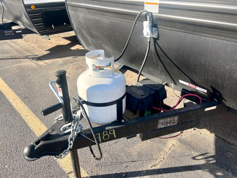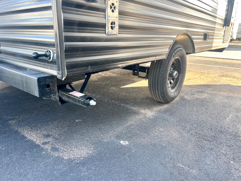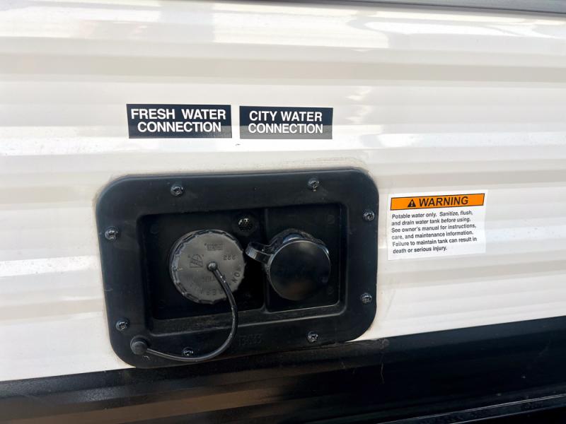This lightweight travel trailer will be easy to tow and even easier to love! There is a unique rear entry door, a front queen bed, plus a full bath onboard so you don't have to use the camp's facilities. The two burner cooktop and 12V refrigerator will let you cook and store food, and the booth dinette provides dining and sleeping space for a guest. If the weather is nice, you may just want to head outdoors to sit under the 10' power awning!