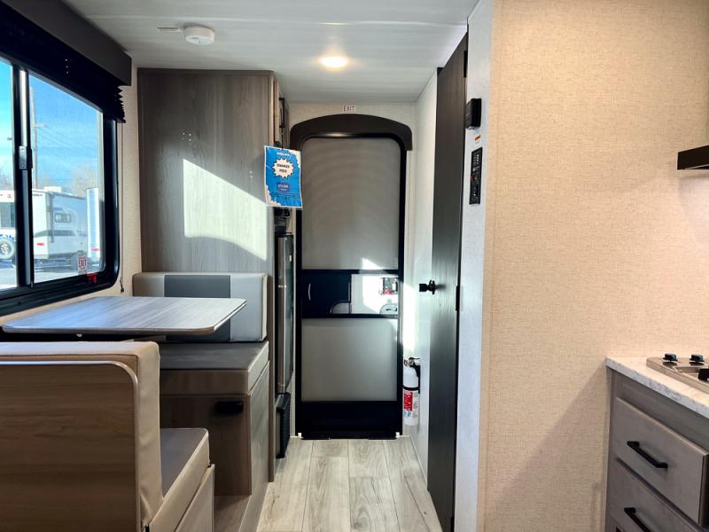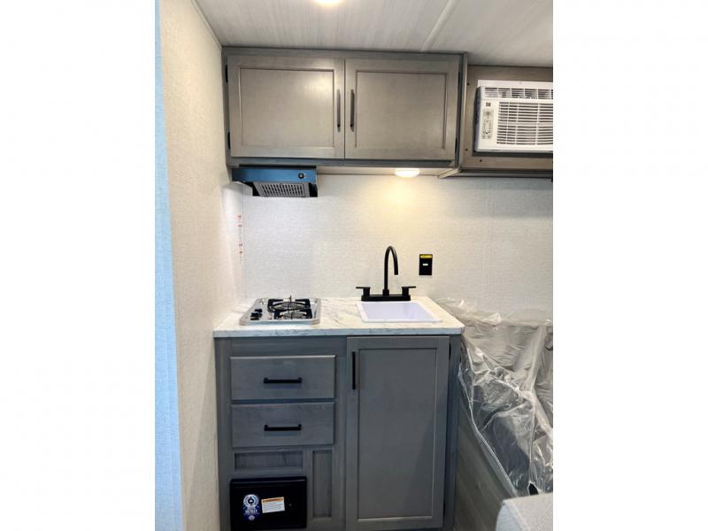 Open your horizons with the Hideout Sport Single Axle travel trailers by Keystone. They are compact, convenient, and lightweight; everything you're looking for in an RV! Each model features an aluminum exterior, tinted safety glass windows, and a Super Flex TPO roof membrane for added durability. The interior includes blackout night shades for added privacy and real wood doors and drawers that will give a more at-home touch. The Girard tankless water heater is a feature you won't want to camp without, and the LED lighting will keep your space bright and open!