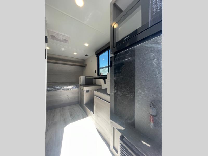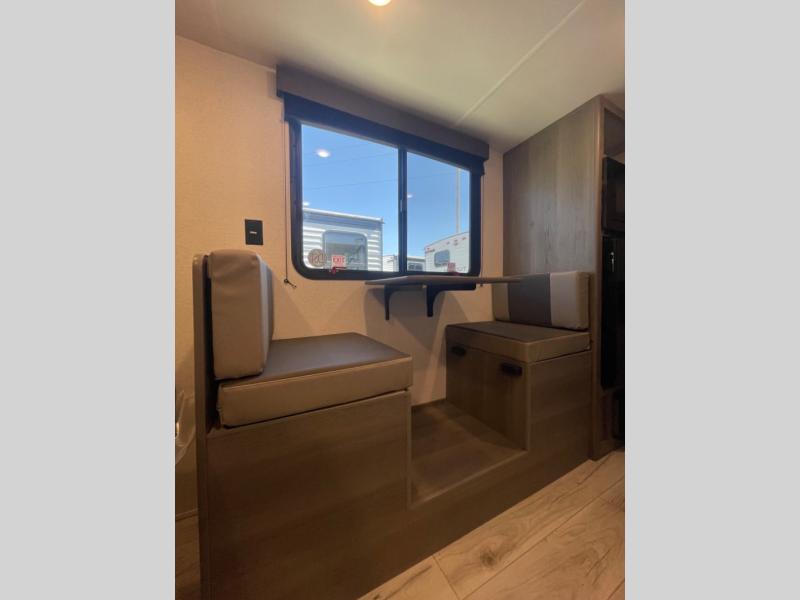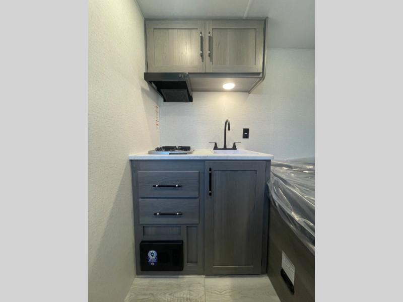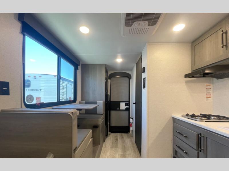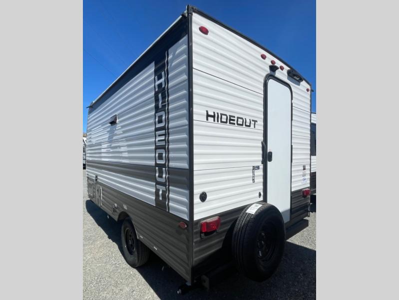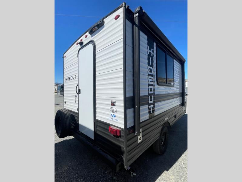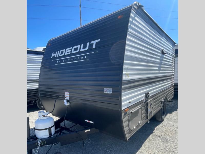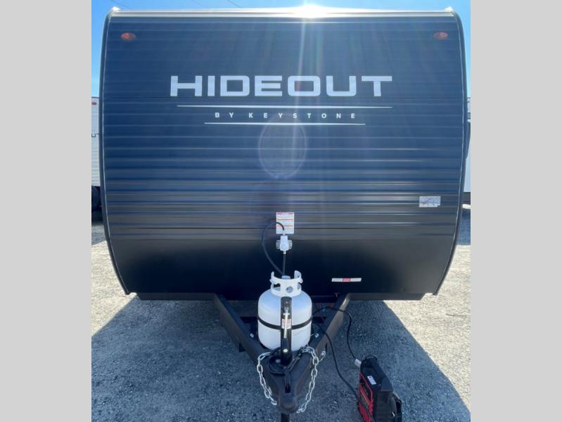 Open your horizons with the Hideout Sport Single Axle travel trailers by Keystone. They are compact, convenient, and lightweight; everything you're looking for in an RV! Each model features an aluminum exterior, tinted safety glass windows, and a Super Flex TPO roof membrane for added durability. The interior includes blackout night shades for added privacy and real wood doors and drawers that will give a more at-home touch. The Girard tankless water heater is a feature you won't want to camp without, and the LED lighting will keep your space bright and open!
