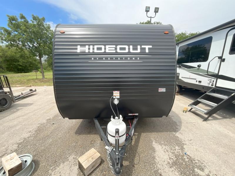 Open your horizons with the Hideout Sport Single Axle travel trailers by Keystone. They are compact, convenient, and lightweight; everything you're looking for in an RV! Each model features an aluminum exterior, tinted safety glass windows, and a Super Flex TPO roof membrane for added durability. The interior includes blackout night shades for added privacy and solid wood doors and drawers that will give a more at-home touch. The Girard tankless water heater is a feature you won't want to camp without, and the LED lighting will keep your space bright and open!