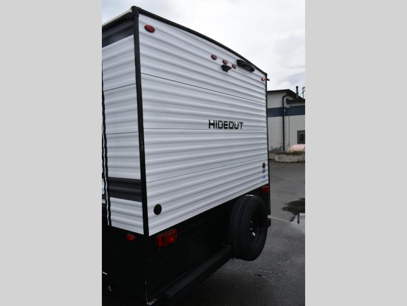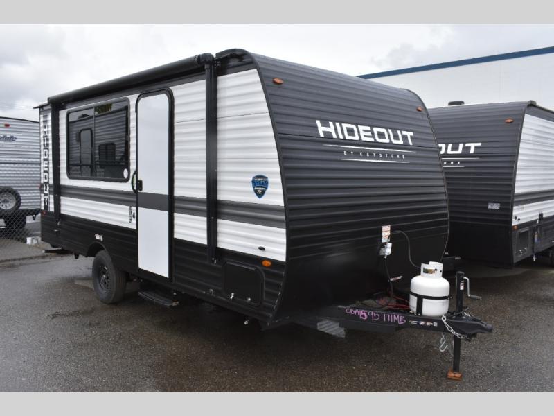 Open your horizons with the Hideout Sport Single Axle travel trailers by Keystone. They are compact, convenient, and lightweight; everything you're looking for in an RV! Each model features an aluminum exterior, tinted safety glass windows, and a Super Flex TPO roof membrane for added durability. The interior includes blackout night shades for added privacy and real wood doors and drawers that will give a more at-home touch. The Girard tankless water heater is a feature you won't want to camp without, and the LED lighting will keep your space bright and open!