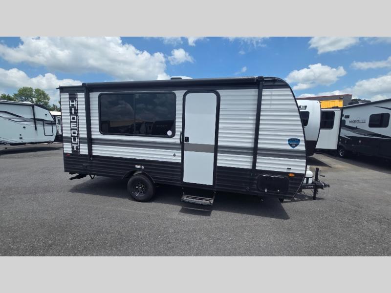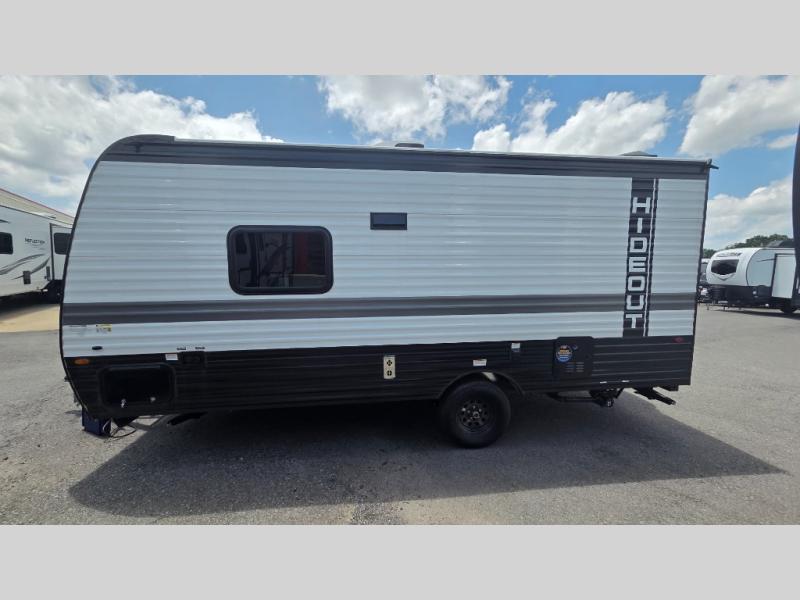 Open your horizons with the Hideout Sport Single Axle travel trailers by Keystone. They are compact, convenient, and lightweight; everything you're looking for in an RV! Each model features an aluminum exterior, tinted safety glass windows, and a Super Flex TPO roof membrane for added durability. The interior includes blackout night shades for added privacy and solid wood doors and drawers that will give a more at-home touch. The Girard tankless water heater is a feature you won't want to camp without, and the LED lighting will keep your space bright and open!
