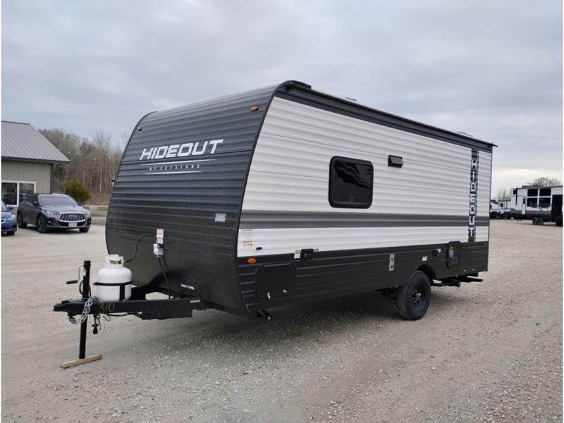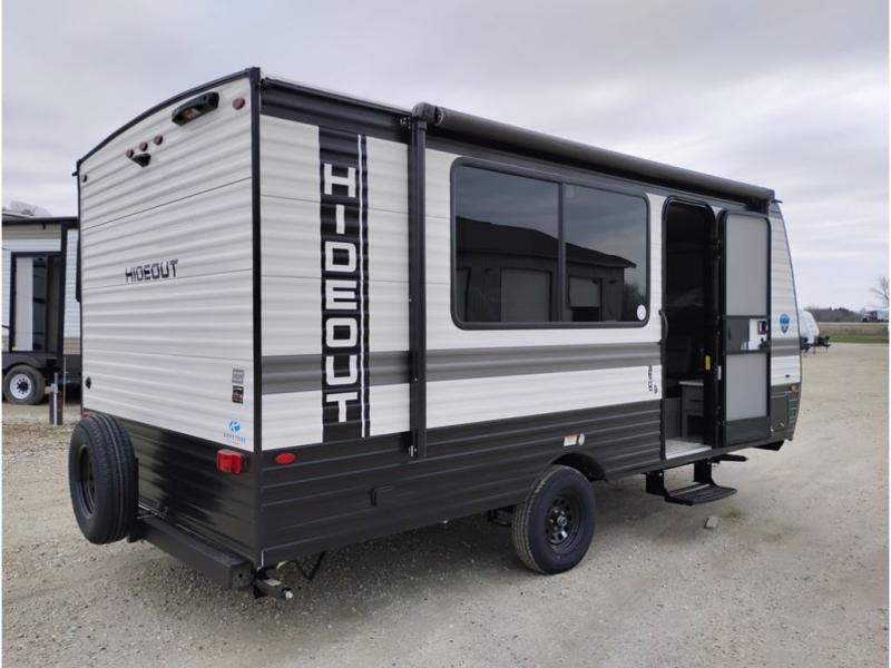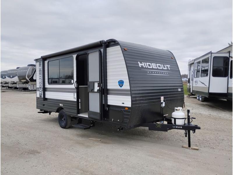 Open your horizons with the Hideout Sport Single Axle travel trailers by Keystone. They are compact, convenient, and lightweight; everything you're looking for in an RV! Each model features an aluminum exterior, tinted safety glass windows, and a Super Flex TPO roof membrane for added durability. The interior includes blackout night shades for added privacy and solid wood doors and drawers that will give a more at-home touch. The Girard tankless water heater is a feature you won't want to camp without, and the LED lighting will keep your space bright and open!