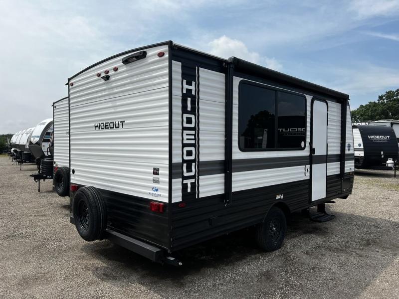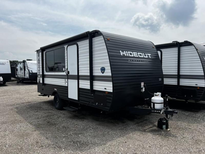 Open your horizons with the Hideout Sport Single Axle travel trailers by Keystone. They are compact, convenient, and lightweight; everything you're looking for in an RV! Each model features an aluminum exterior, tinted safety glass windows, and a Super Flex TPO roof membrane for added durability. The interior includes blackout night shades for added privacy and solid wood doors and drawers that will give a more at-home touch. The Girard tankless water heater is a feature you won't want to camp without, and the LED lighting will keep your space bright and open!