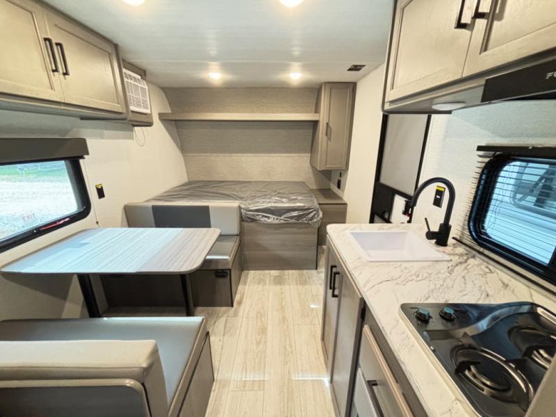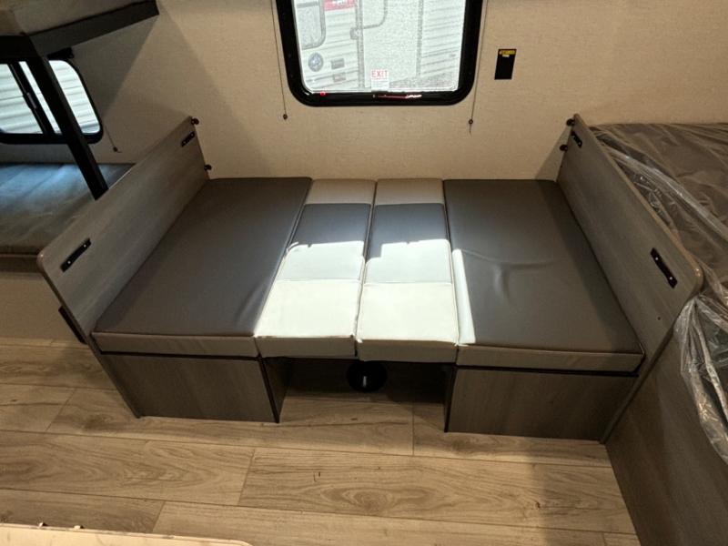 - Convertible booth dinette for meals, games, or extra sleeping flexibility