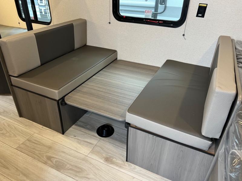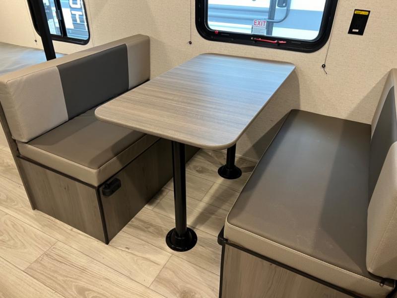 - Convertible booth dinette for dining, games, or extra sleeping space