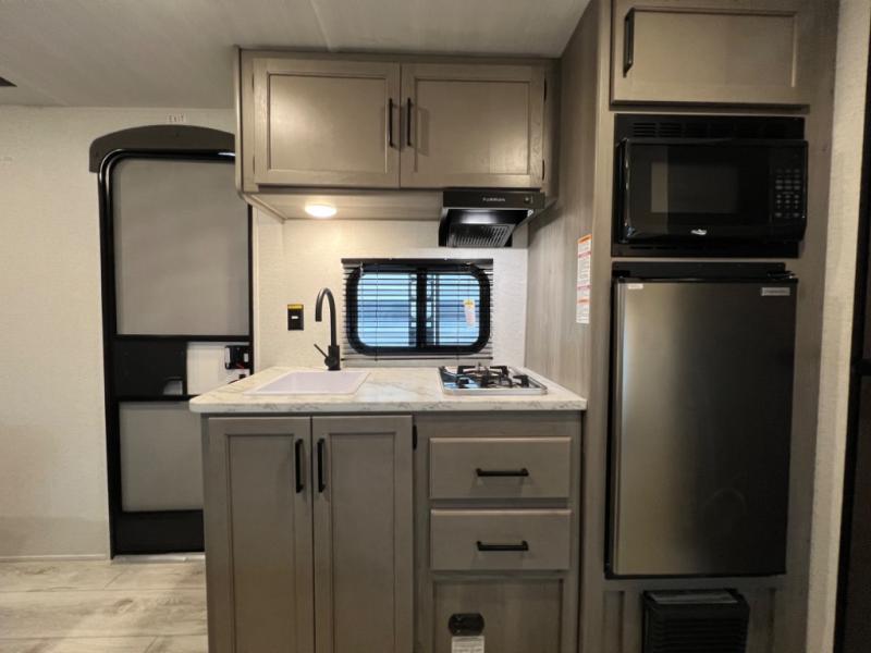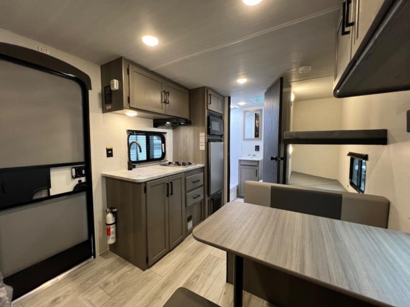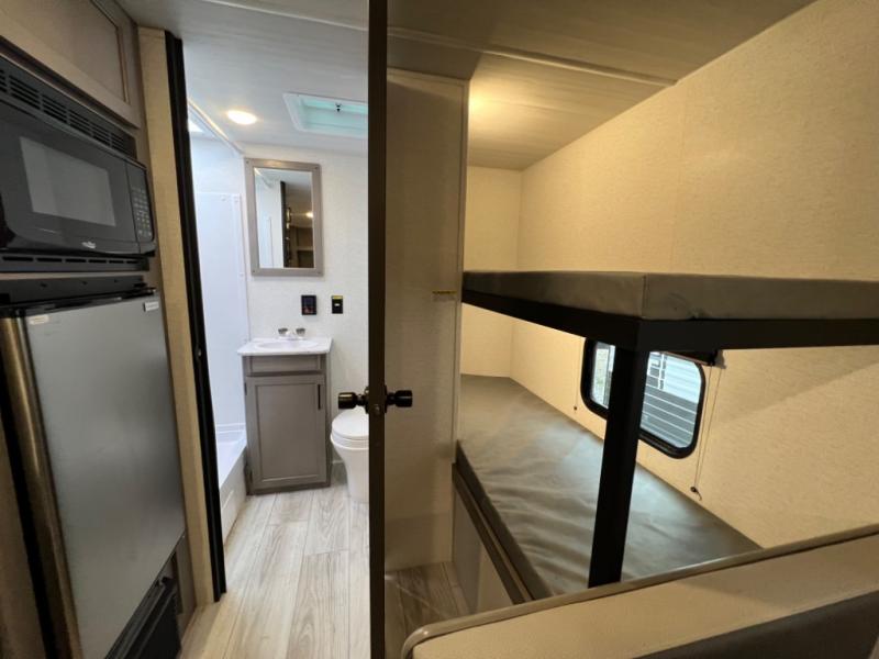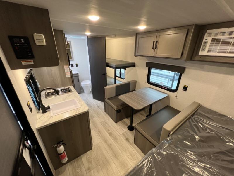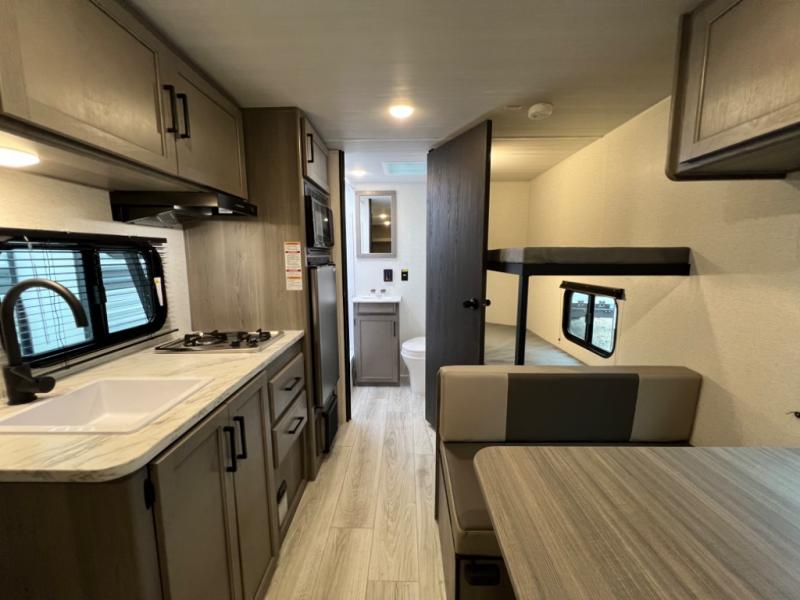 This Hideout Sport offers a thoughtfully designed compact layout with bunk beds, a private queen bed, and functional kitchen and bathroom spaces. Its combination of storage, comfort, and easy towing makes it perfect for families or friends looking to enjoy every camping trip. Start planning your next adventure today and experience the convenience of this versatile travel trailer.
