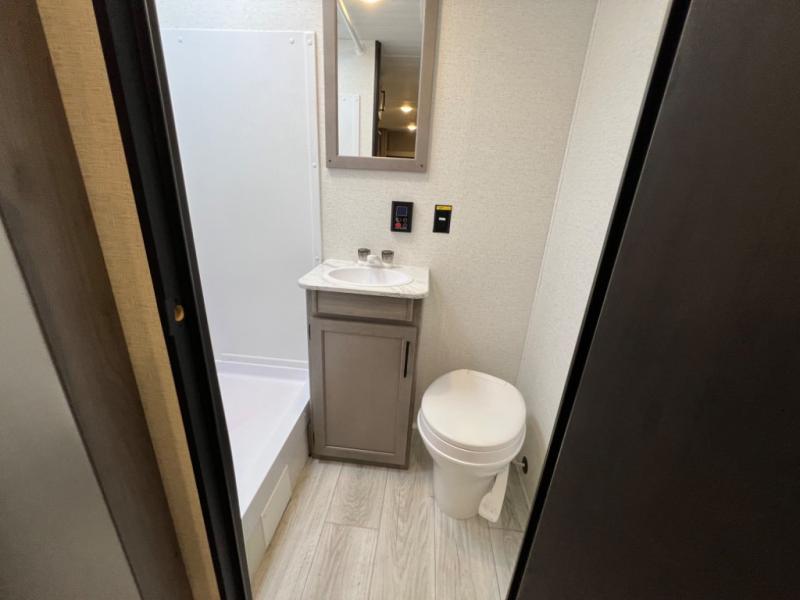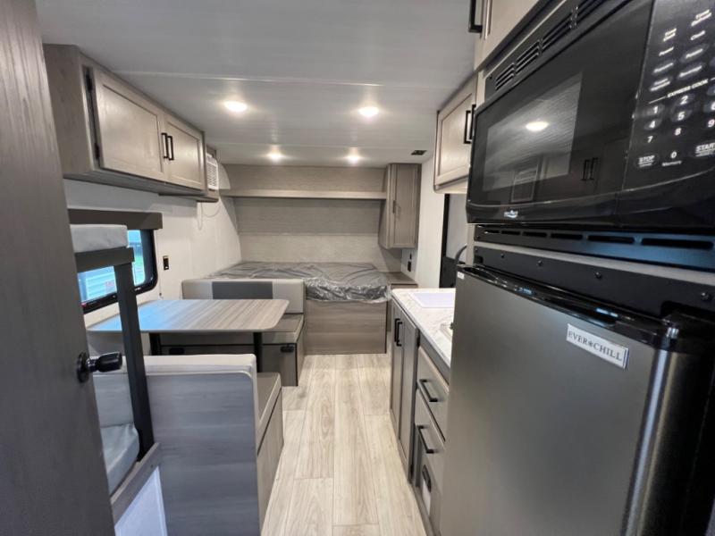 This compact travel trailer is designed for families or small groups who value comfort, practicality, and memorable adventures. With a private queen bed in the front bedroom and rear corner bunk beds, everyone enjoys their own space. Ideal for travelers seeking a lightweight, easy-to-tow RV with smart features and functional living areas.