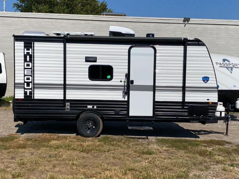 Open your horizons with the Hideout Sport Single Axle travel trailers by Keystone. They are compact, convenient, and lightweight; everything you're looking for in an RV! Each model features an aluminum exterior, tinted safety glass windows, and a Super Flex TPO roof membrane for added durability. The interior includes blackout night shades for added privacy and real wood doors and drawers that will give a more at-home touch. The Girard tankless water heater is a feature you won't want to camp without, and the LED lighting will keep your space bright and open!