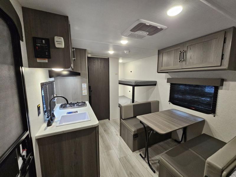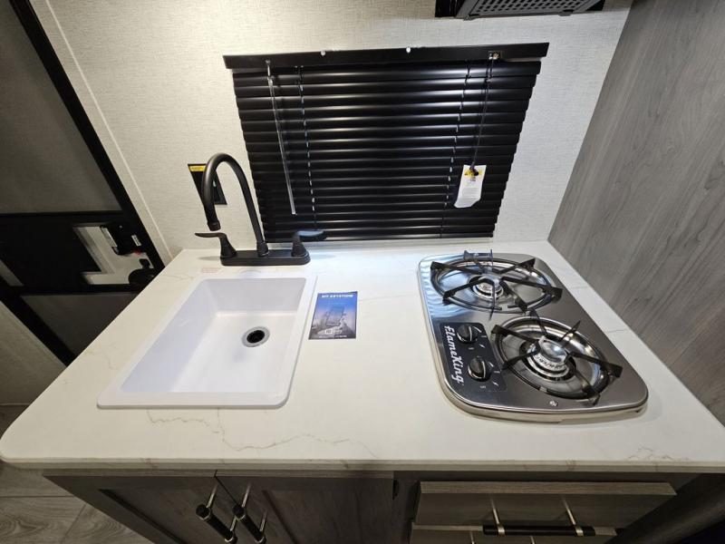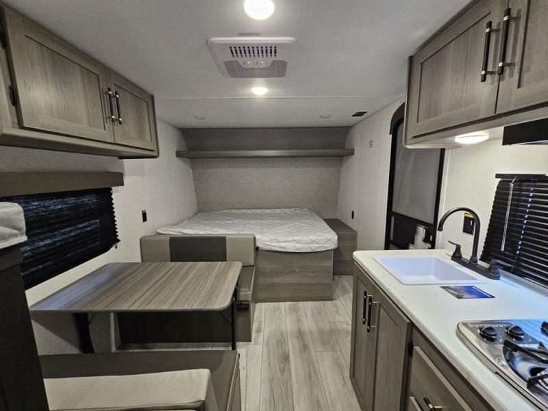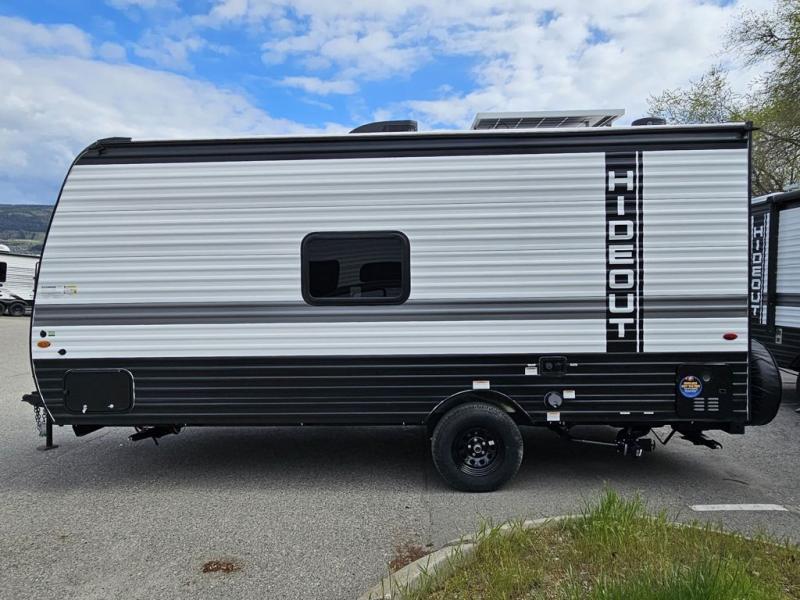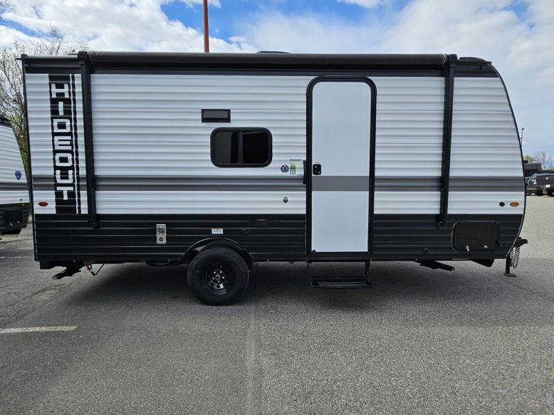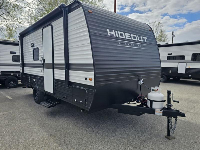 Open your horizons with the Hideout Sport Single Axle travel trailers by Keystone. They are compact, convenient, and lightweight; everything you're looking for in an RV! Each model features an aluminum exterior, tinted safety glass windows, and a Super Flex TPO roof membrane for added durability. The interior includes blackout night shades for added privacy and real wood doors and drawers that will give a more at-home touch. The Girard tankless water heater is a feature you won't want to camp without, and the LED lighting will keep your space bright and open!