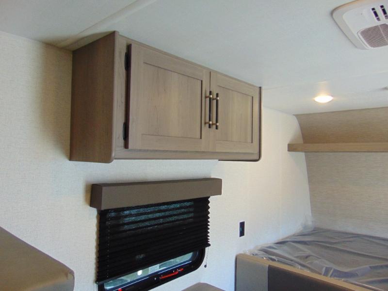 This trailer will fit perfectly for a group of five or less thanks to all the sleeping space! The owners will have a queen-size bed, and others can choose between the compact, convenient, and lightweight; everything you're looking for in an RV! Each model features an aluminum exterior, tinted safety glass windows, and a Super Flex TPO roof membrane for added durability. The interior includes blackout night shades for added privacy and real wood doors and drawers that will give a more at-home touch.